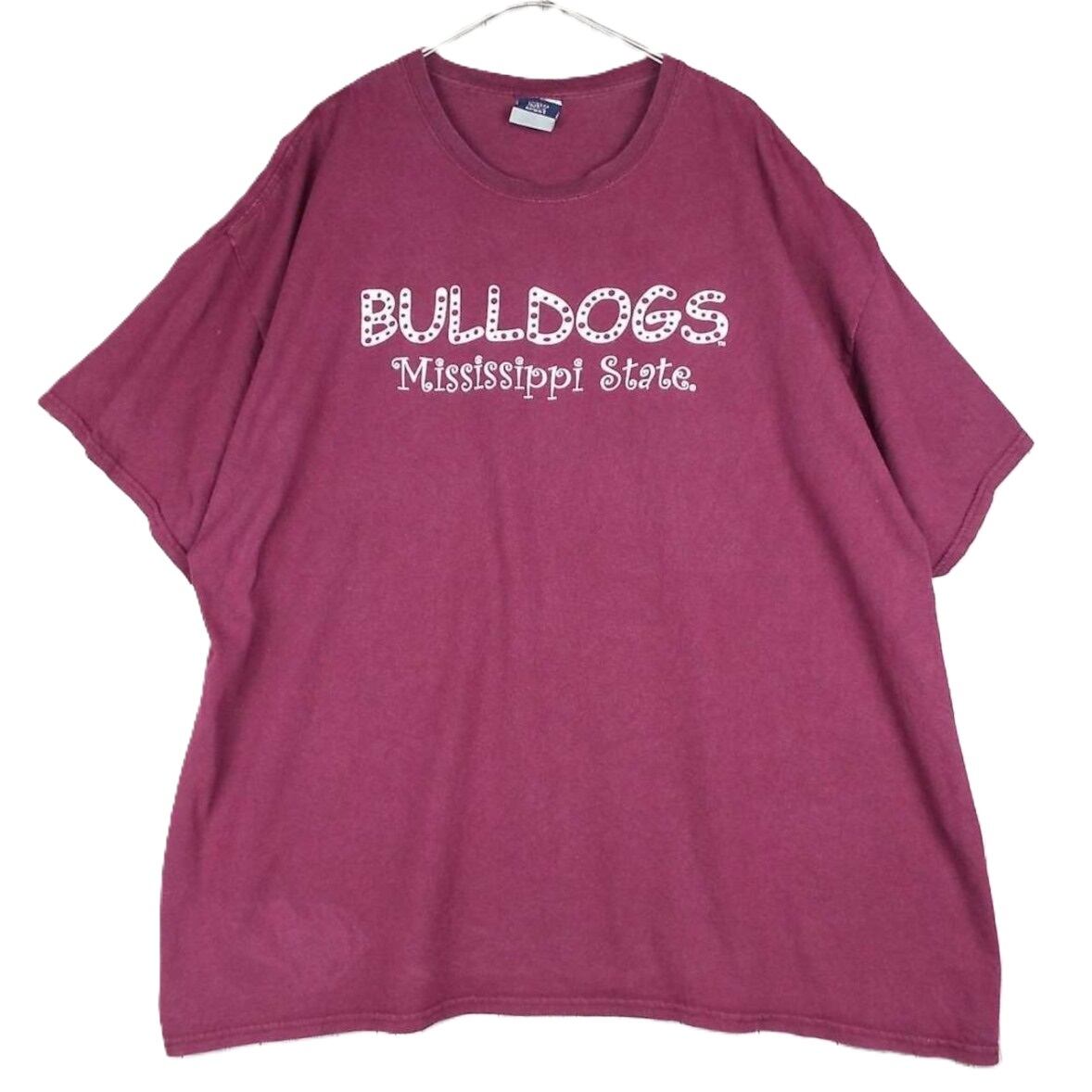 【肩幅65cm】【カレッジロゴ】MV SPORT エムブイスポーツ BULLDOGS MISSISSIPPI STATE ミシシッピ州立大学 チーム プリント 半袖Tシャツ 3XLサイズ ボルドー【湘南倉庫】USメンズ古着 ゆるだぼ T17
