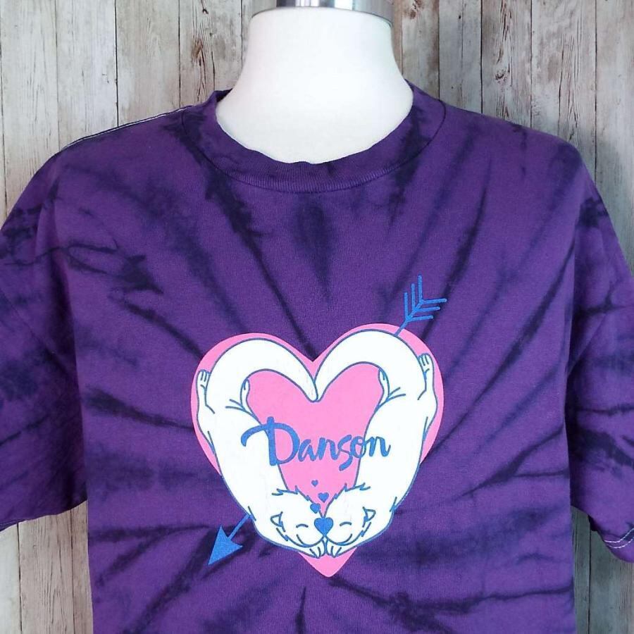 ◎肩幅51cm◎【レアブランド】DANSON SIGNIFICANT OTTER キャラクター グラデーション プリント 半袖Tシャツ Lサイズ タイダイ染 パープル【湘南倉庫】USA古着 T3