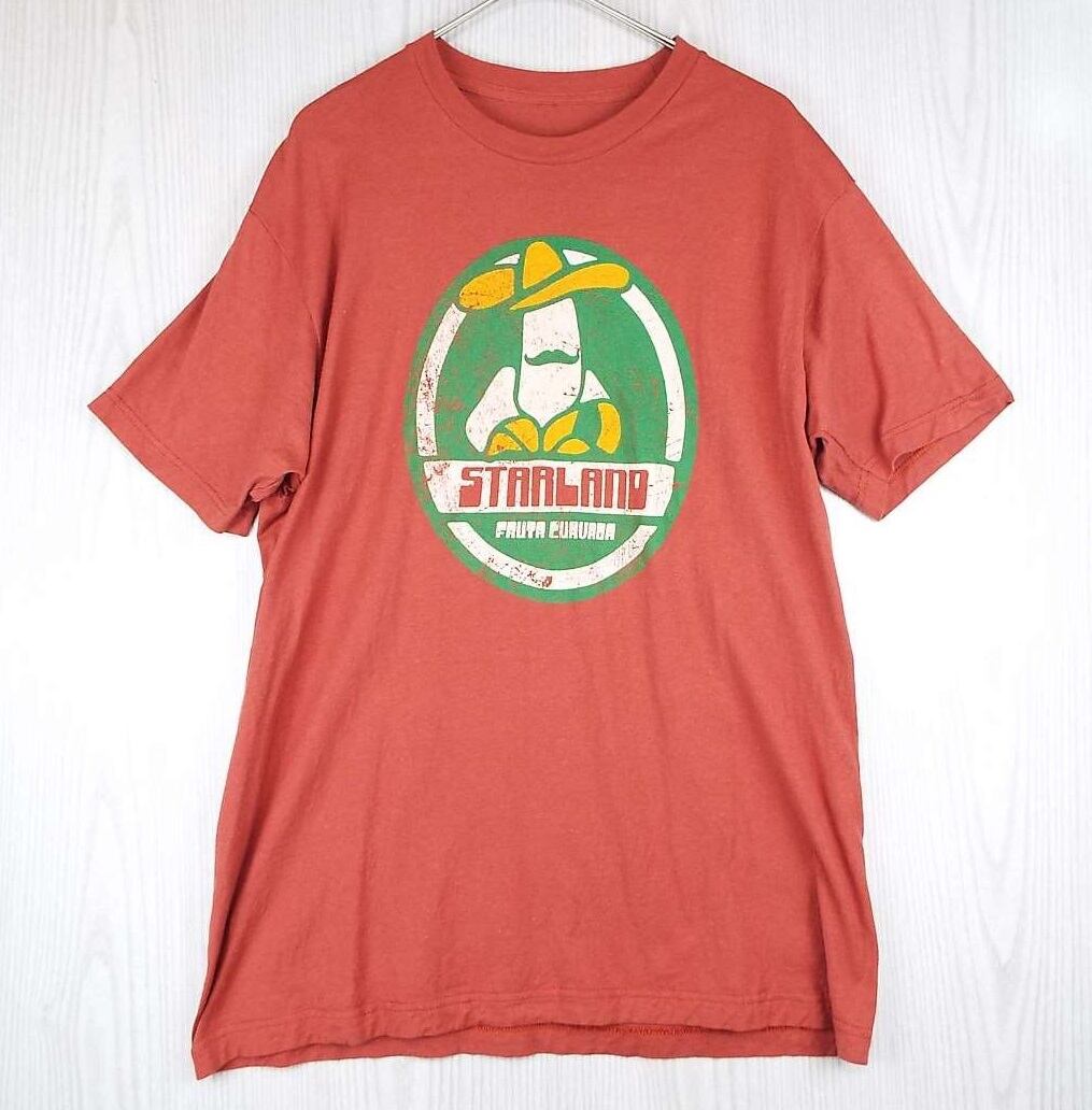 【肩幅48.5cm】【キャラクター】STARLAND FUATA CUADA グラフィック 擦れロゴ プリント 半袖Tシャツ Mサイズ オレンジブラウン【湘南倉庫】USA古着 ビッグサイズ T18