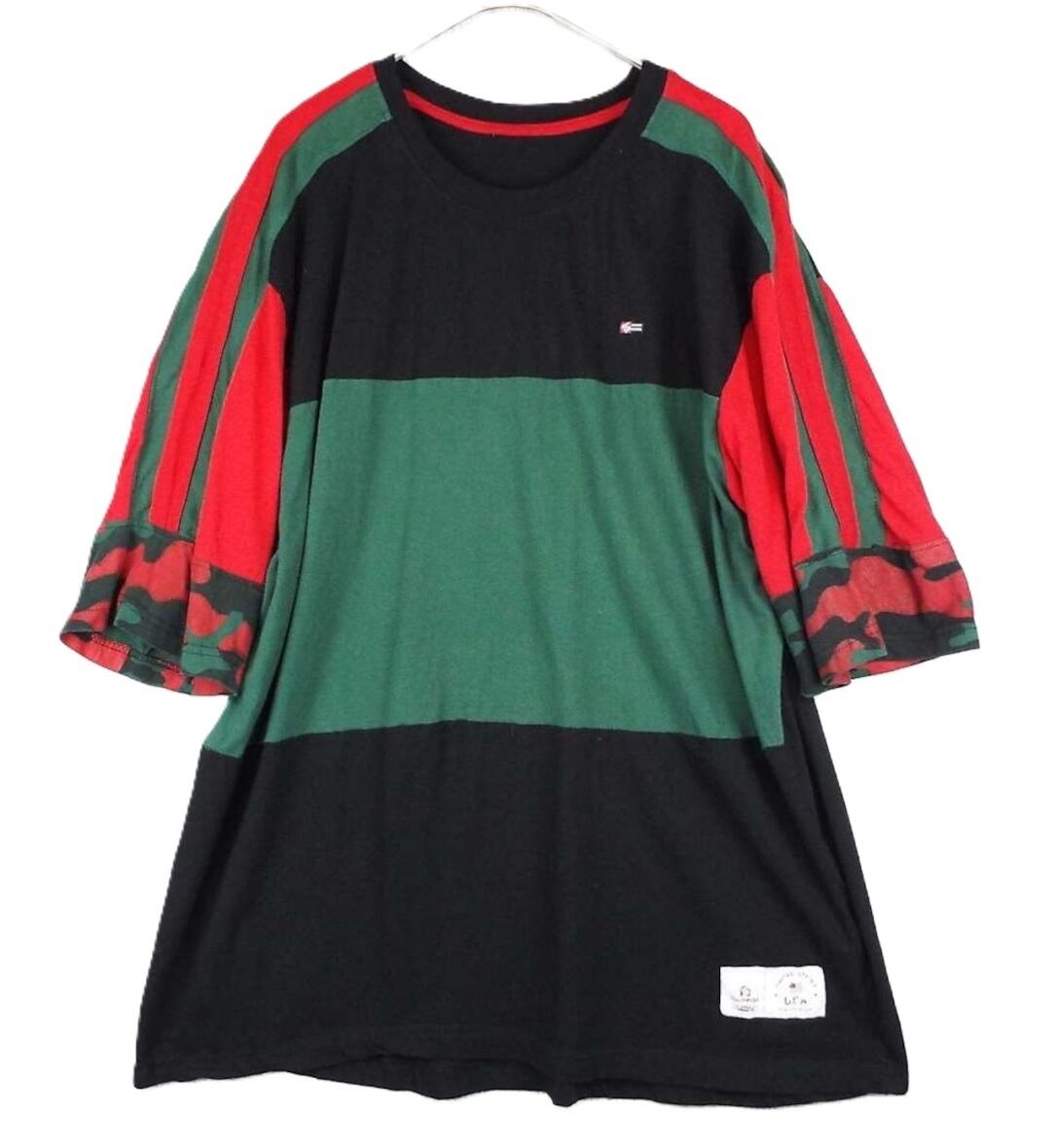 【身幅60cm】レア SOUTHPOLE サイスポール USA THE BLOCK カモフラ パッチデザイン 胸ロゴ 半袖Tシャツ 2XLサイズ ブラック・グリーン コットン混 海外古着【湘南倉庫】ビッグサイズT