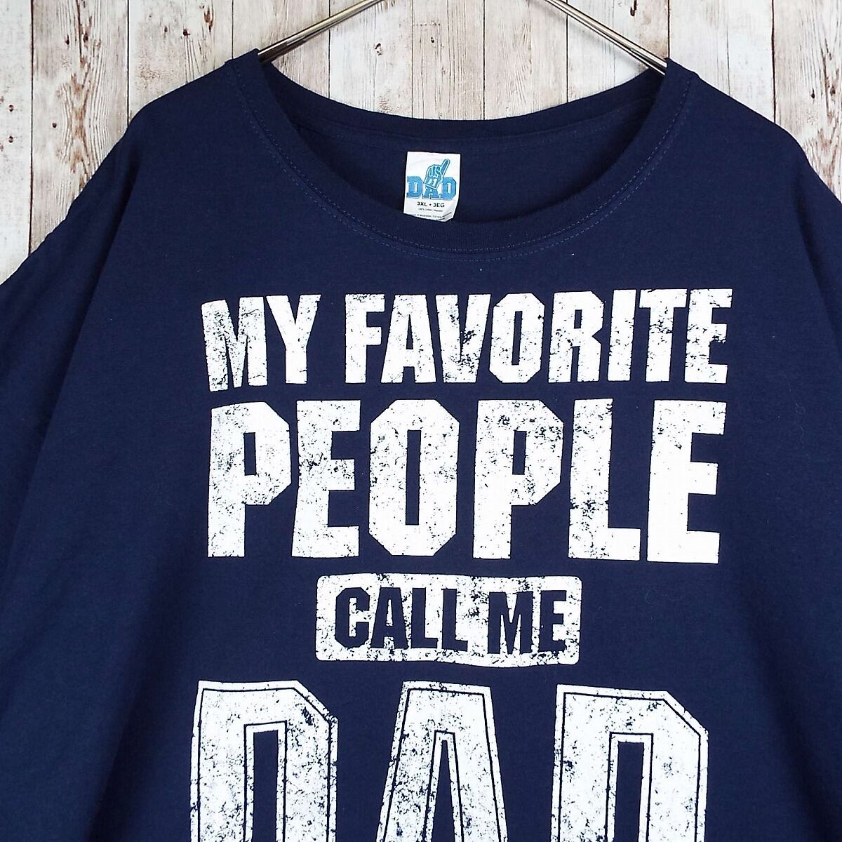 【肩幅67.5cm】【レタードデザイン】3dRose #1 Dad MY FAVORITE PEOPLE CALL ME DAD 4段ロゴ カレッジ風 前プリ 英文字 前プリ 半袖Tシャツ 3XLサイズ ネイビー コットン100% 【湘南倉庫】USメンズ古着 ゆるだぼ T20