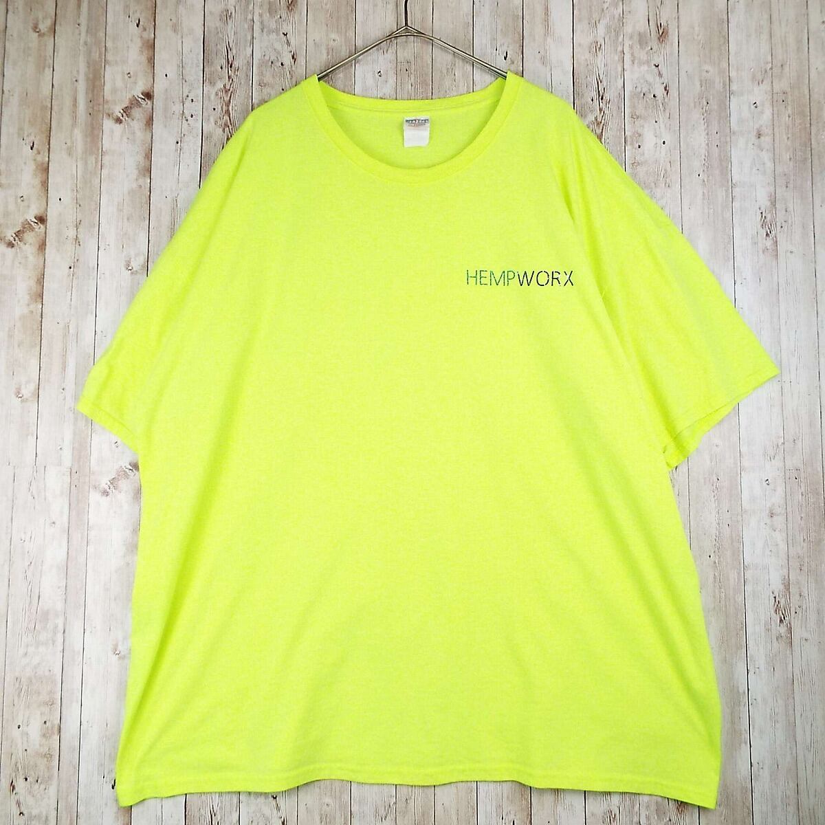 【肩幅71cm】【ラメ&ミラーシール】JERZEES ジャージーズ HEMPWORX 両面ロゴ 半袖Tシャツ 3XLサイズ 蛍光イエロー コットンポリエステル(50/50)【湘南倉庫】USメンズ古着 Dri-POWER T20