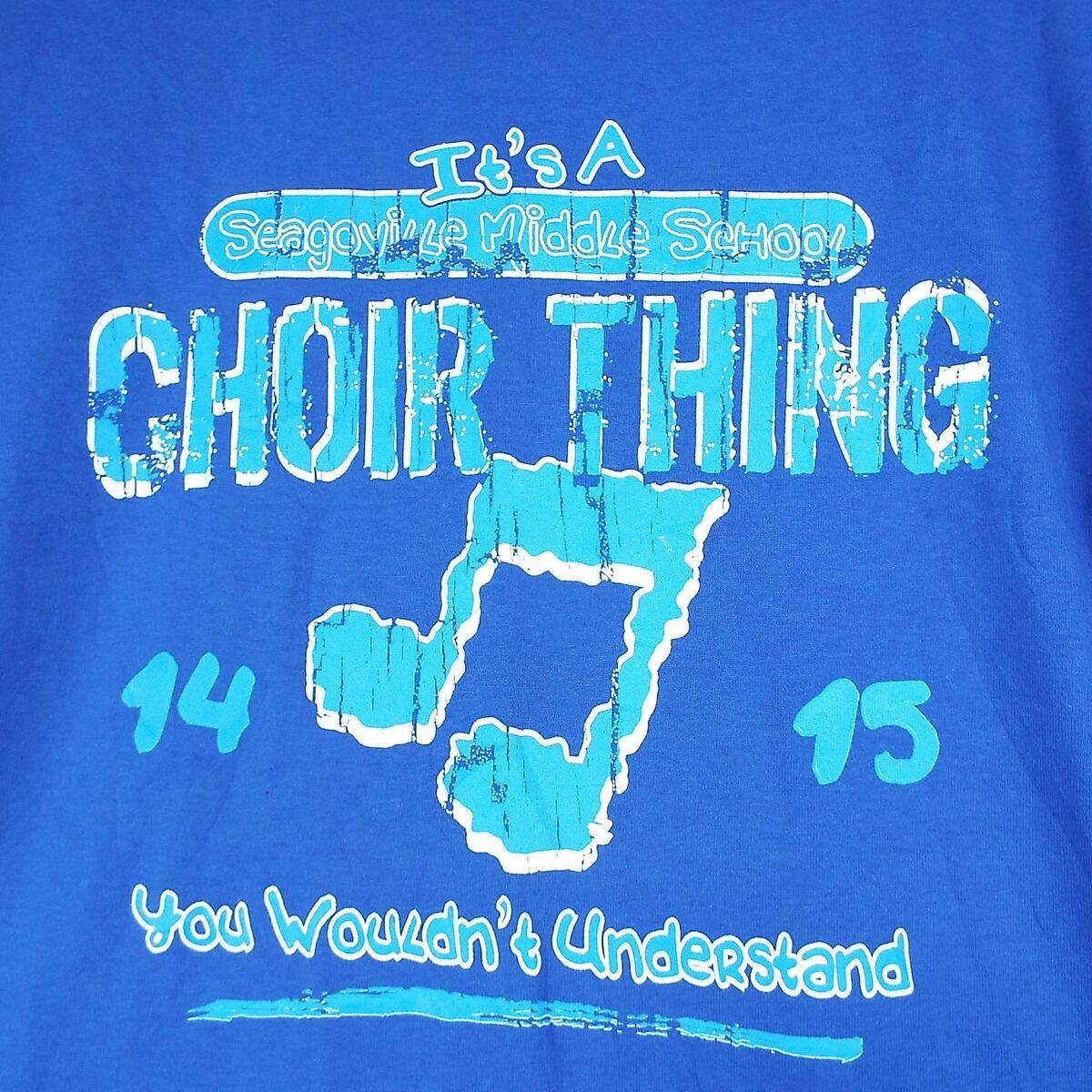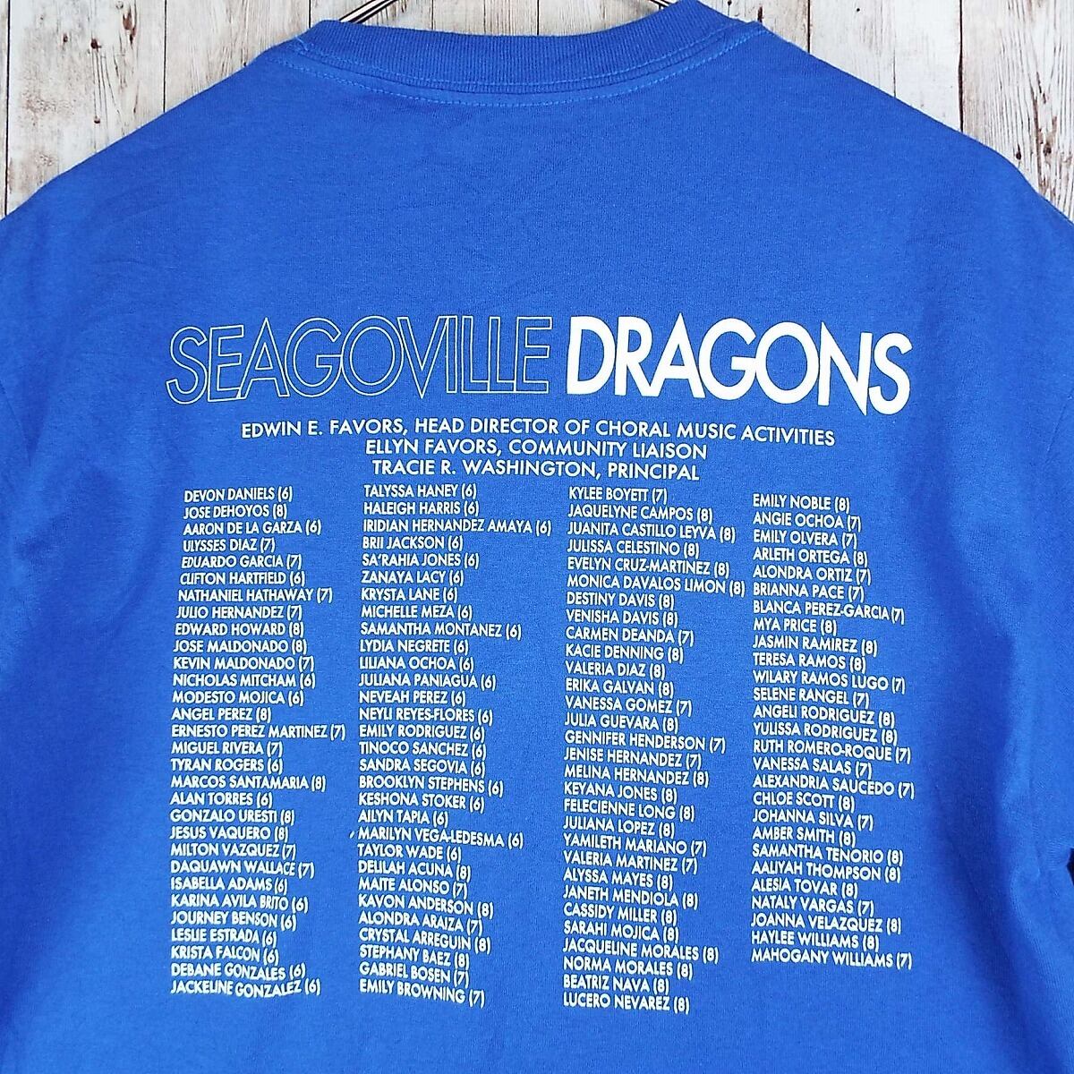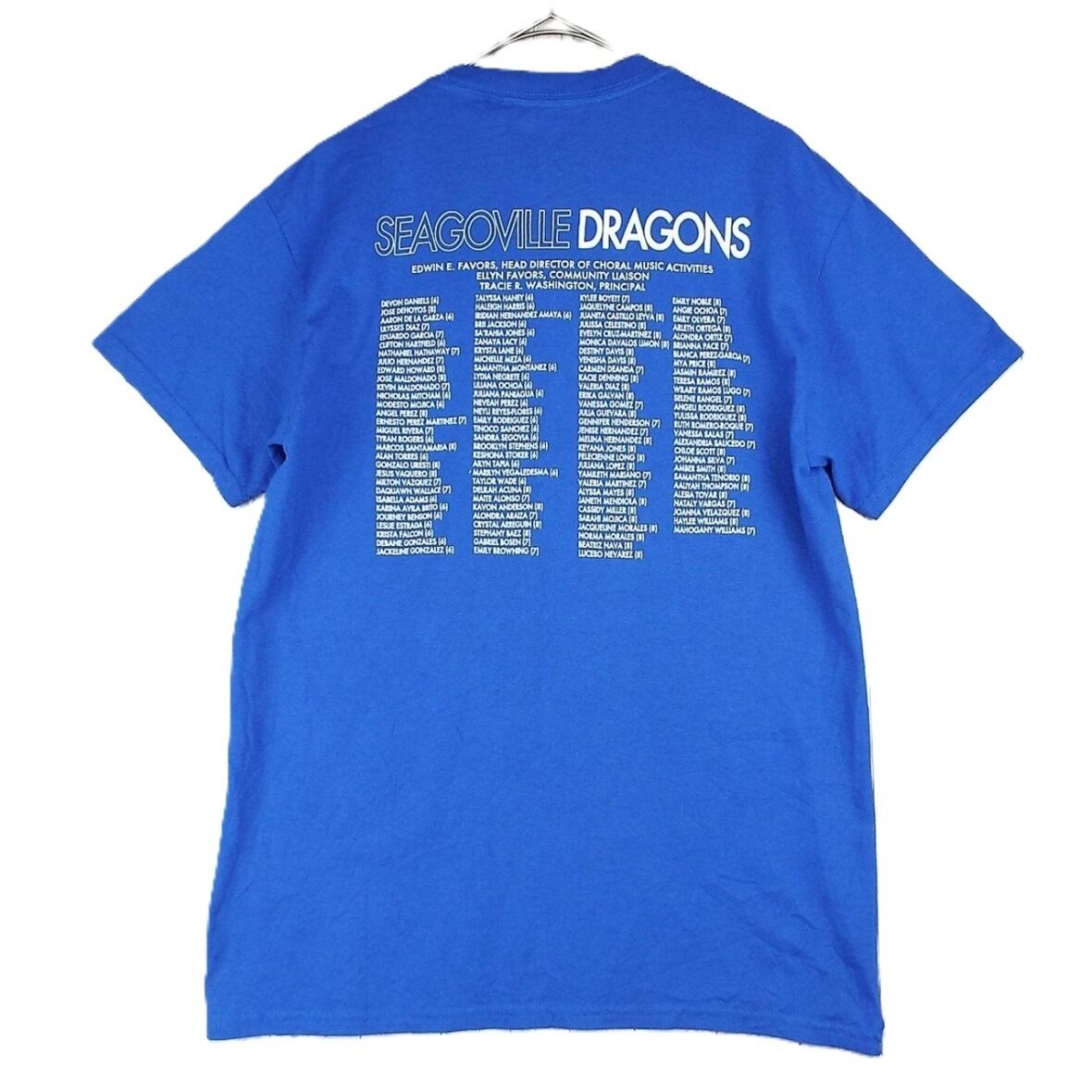 【肩幅48cm】【スクール】GILDAN ギルダン Seagoville Middle School 2014-2015 シーガルビル・ミドル学校 音楽 音符 英文字 両面プリント 半袖Tシャツ Mサイズ ブルー コットンポリエステル(50/50)【湘南倉庫】USメンズ古着 DryBlend T20