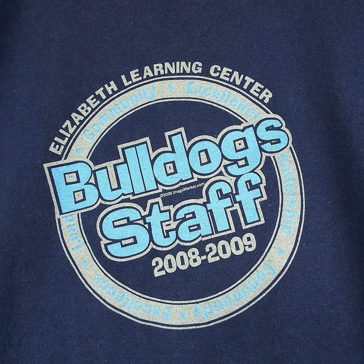 【肩幅48cm】【00年代】FRUIT OF THE LOOM フルーツ・オブ・ザ・ルーム BULLDOGS Staff 2008-2009 ラウンドロゴ スタッフ グラフィック プリント 半袖Tシャツ ネイビー コットン100% 【湘南倉庫】USアメリカ古着