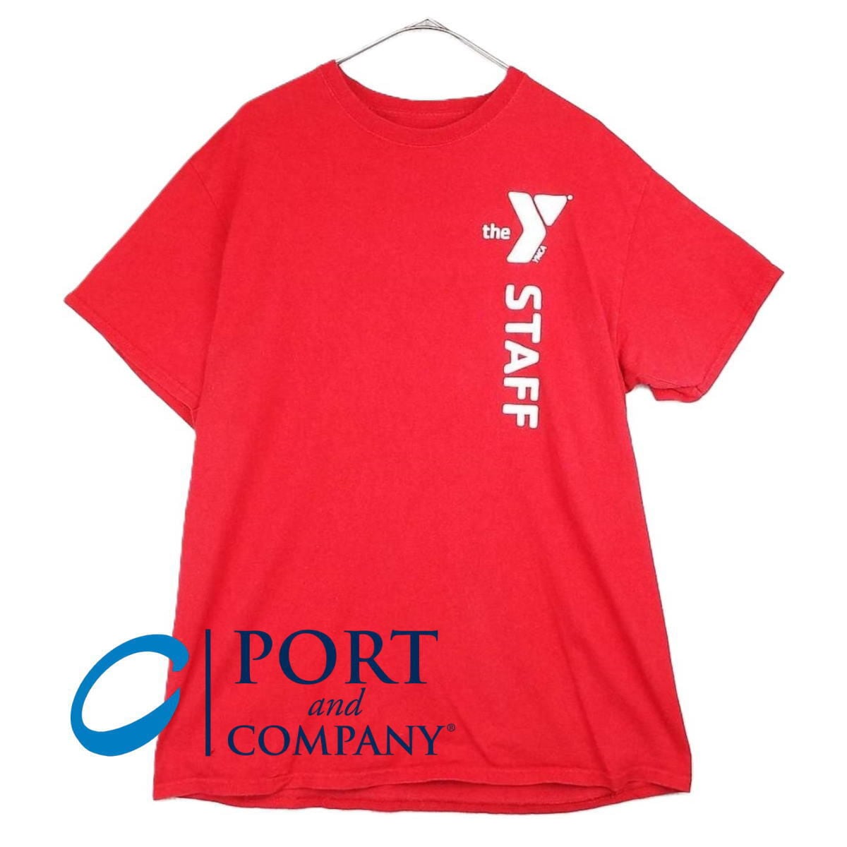【肩幅49cm】PORT AND COMPANY ポート・アンド・カンパニー YMCA THE Y STAFF スタッフ プリント 半袖Tシャツ Lサイズ レッド コットン100% 【湘南倉庫】USメンズ古着 T24