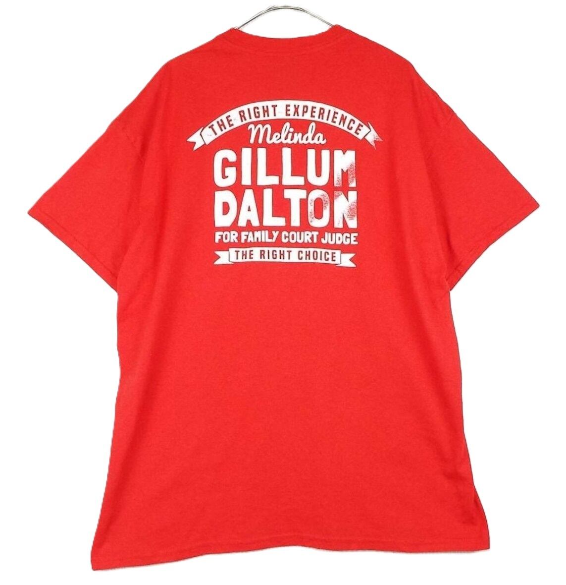 XL|GILDAN Melonda GILLUM DALTON 企業系 女性 擦れプリント 両プリ 半袖Tシャツ レッド コットン混 US古着【湘南倉庫】ビッグサイズT