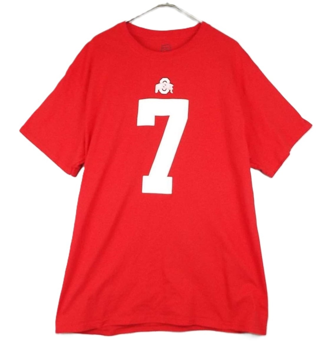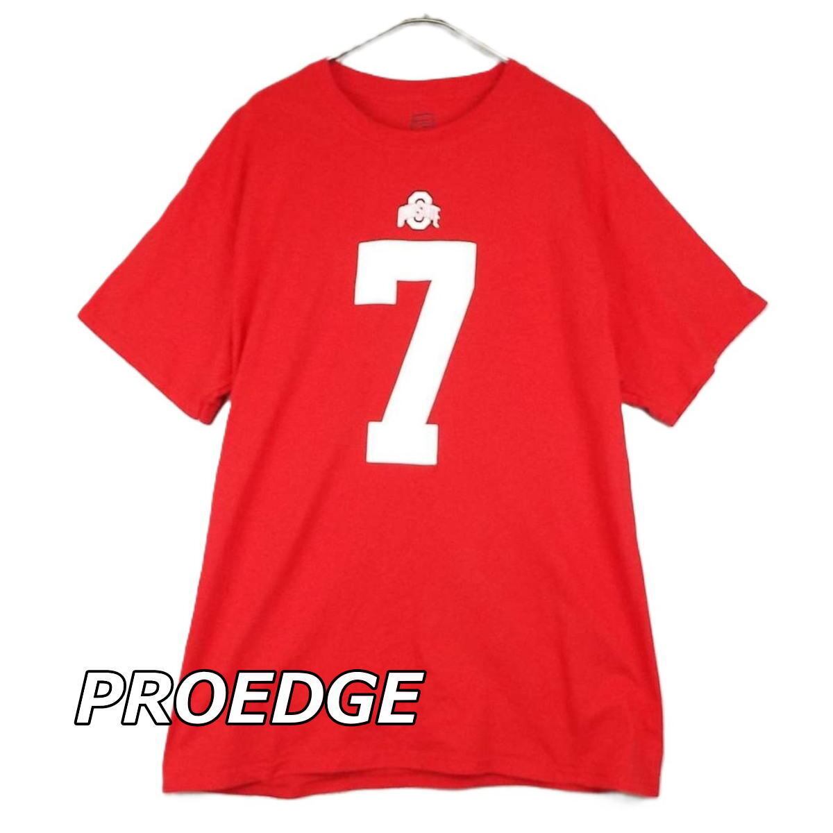 【肩幅52cm】【背番号7】PROEDGE™ プロエッジ OHIO STATE® STROUD オハイオ州立大学 カレッジチーム ラッキーセブン 両面プリント 半袖Tシャツ Lサイズ コットン100% レッド【湘南倉庫】USメンズ古着 T24