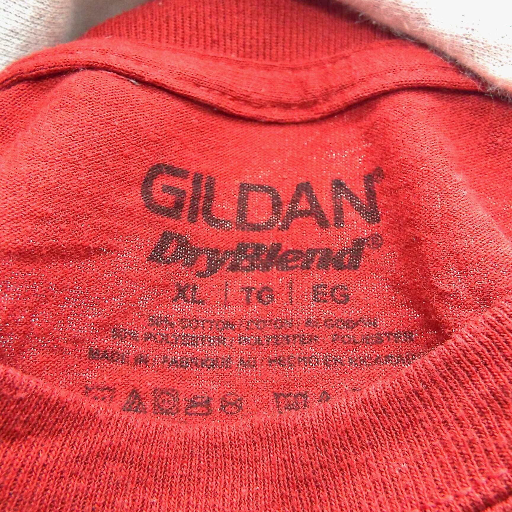 【肩幅57cm】【企業ロゴ】GILDAN ギルダン REDBUD PHYSICAL THERAPY ショップ 心理 セラピスト 両面プリント 半袖Tシャツ XLサイズ レッド コットンポリエステル(50/50) 【湘南倉庫】USメンズ古着 T24 DryBlend