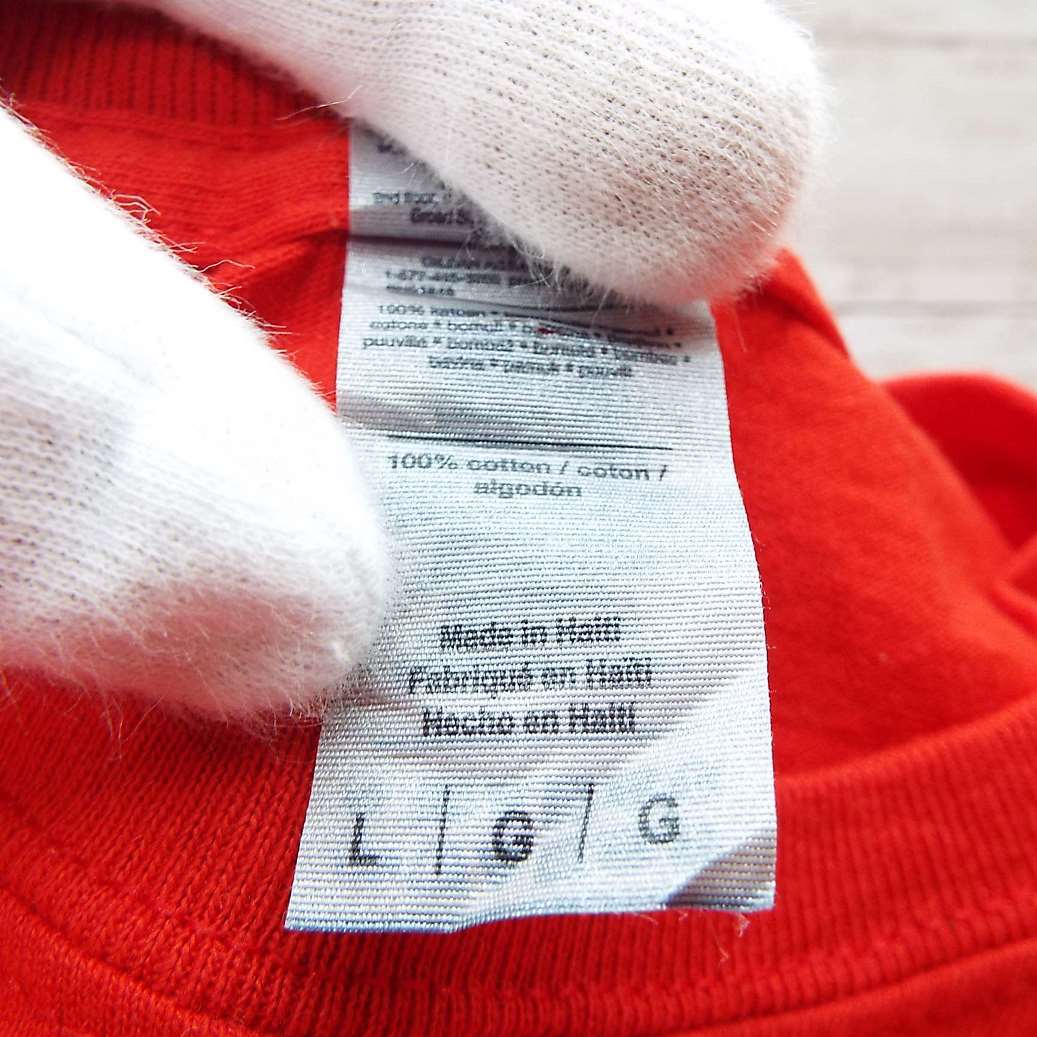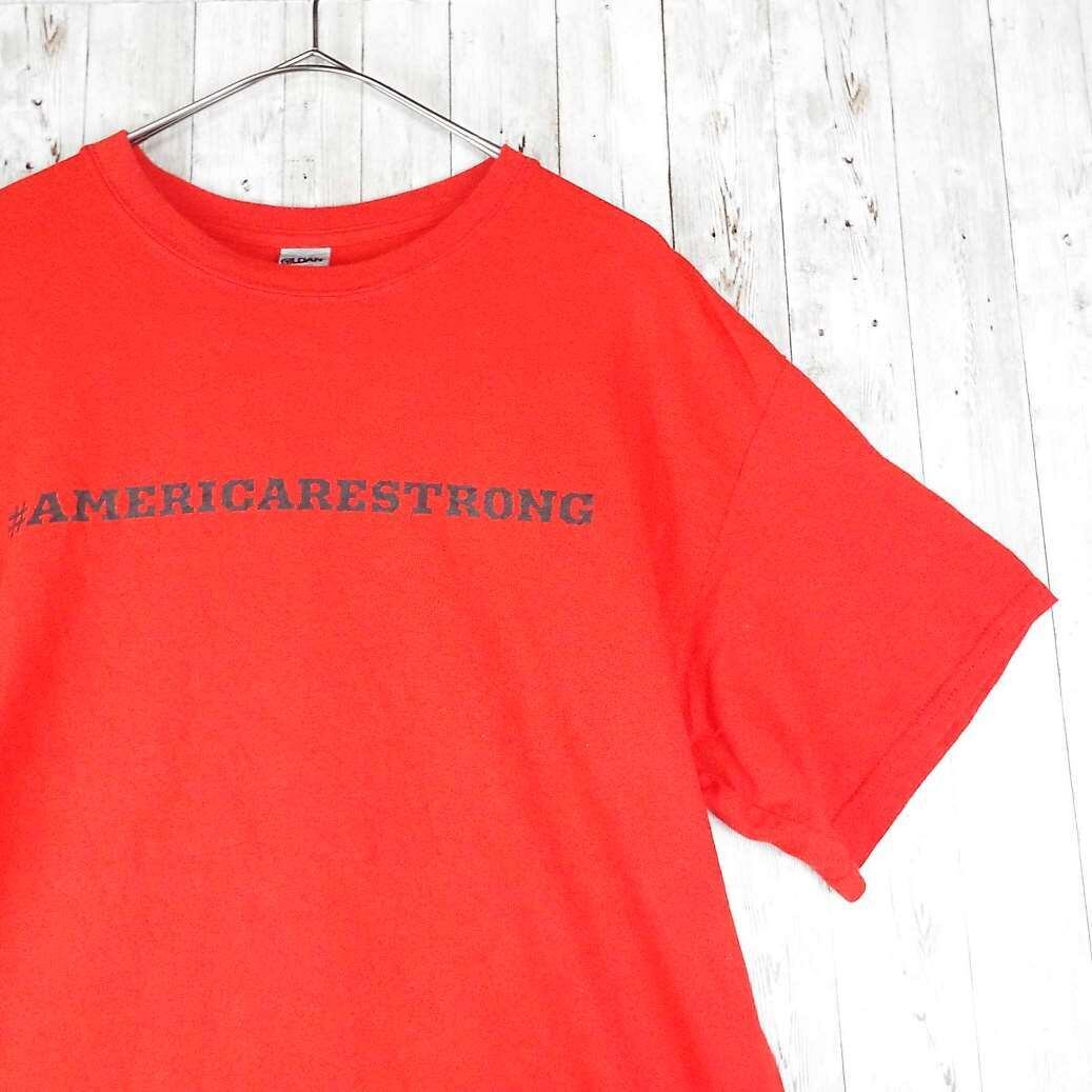 レタードデザイン Lサイズ|GILDAN AMERICAESTRONG inspire kindness 1行ロゴ メッセージ ハート 両面プリ 半袖Tシャツ レッド コットン100% US古着【湘南倉庫】ビッグサイズT