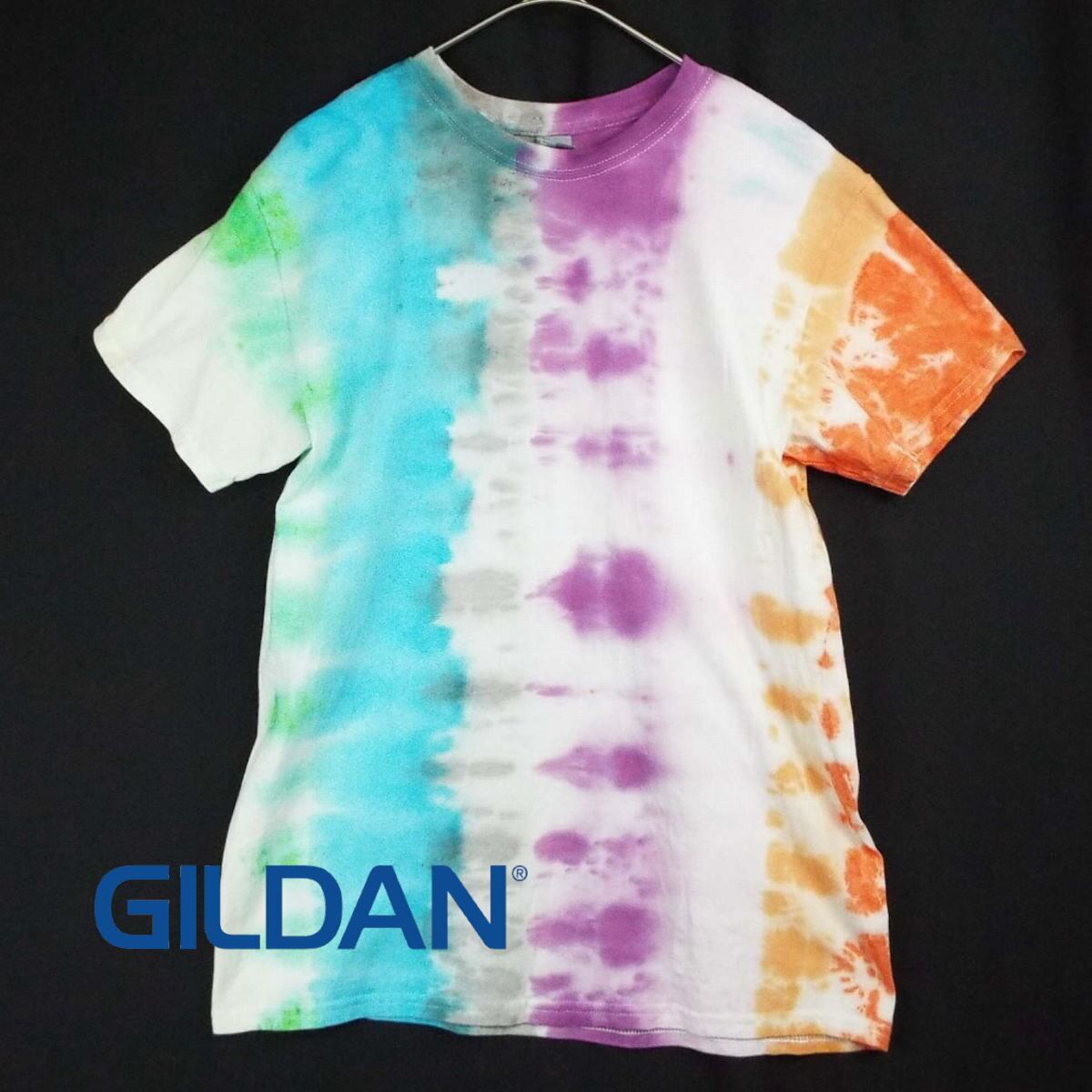 Mサイズ|GILDAN 縦染 グラデーション プレーン タイダイ染 半袖Tシャツ ブルー・パープル・オレンジ・グリーン・マルチカラー コットン100% US古着【湘南倉庫】ビッグサイズT