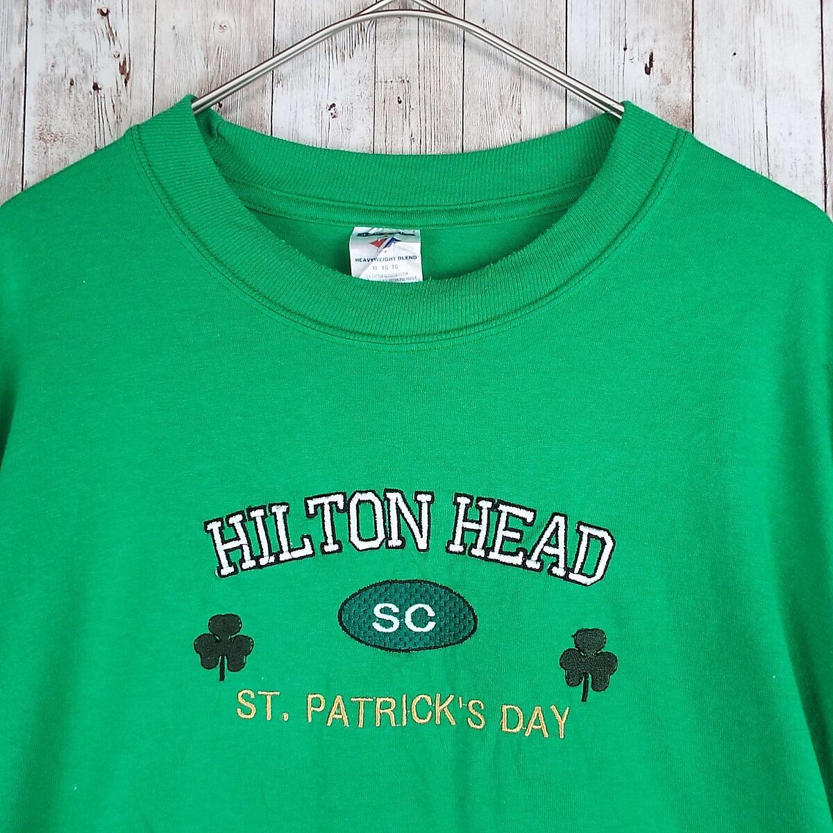 肩幅60cm【ダイヤマーク 90-00年代】JERZEES ジャージーズ HILTON HEAD ST.PATRICK'S DAY セントパトリックデー 刺繍ロゴ クローバー 半袖Tシャツ グリーン コットンポリエステル(50/50) 【湘南倉庫】USアメリカ古着 ゆるだぼ