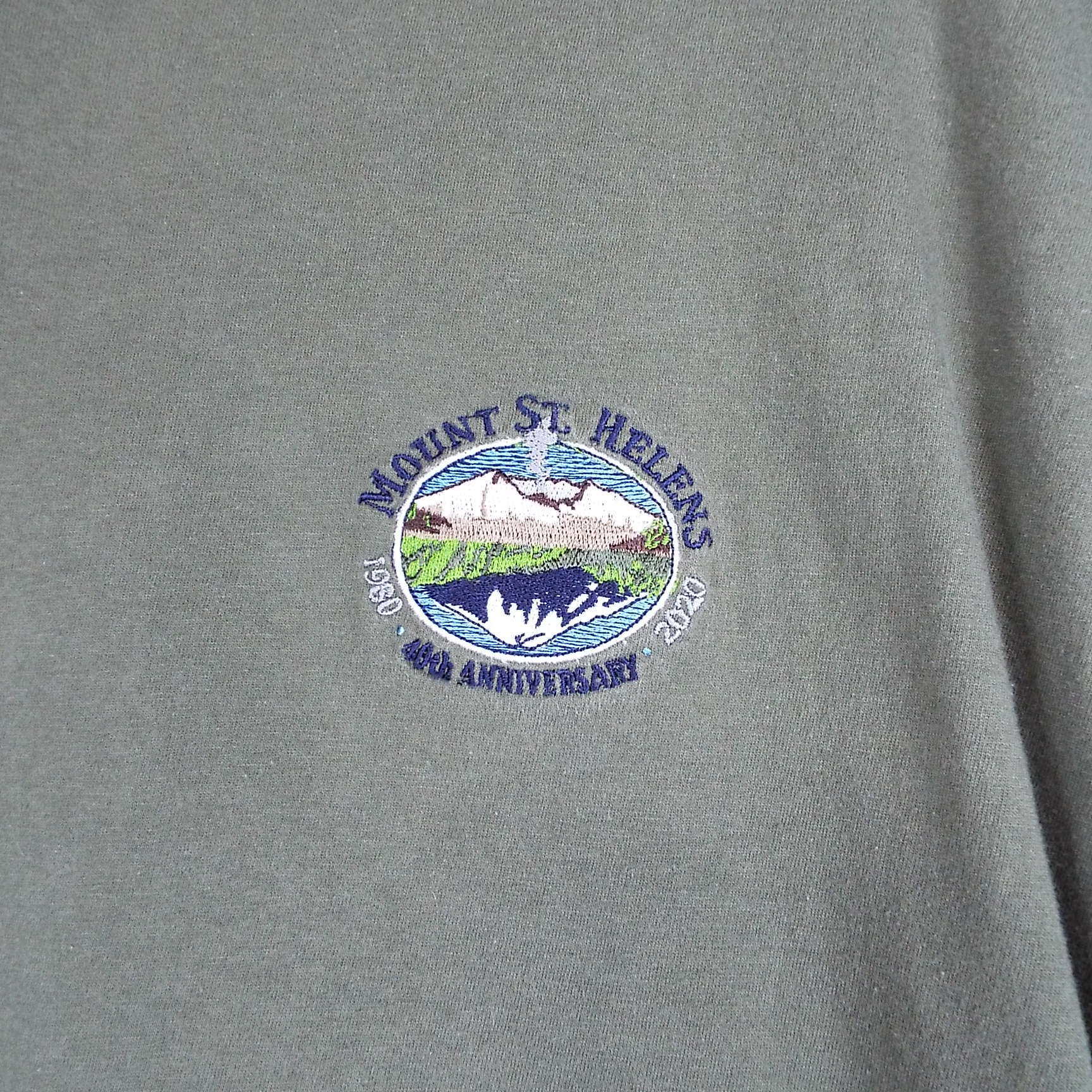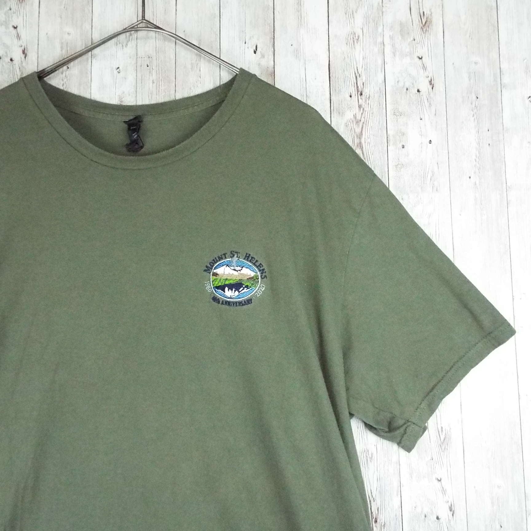 レディース2XL|Hanes MOUNT St.HELENS 40anniversary セント・ヘレンズ 火山 刺繍ロゴ 40周年記念 半袖Tシャツ グリーン コットン US古着【湘南倉庫】ビッグサイズT