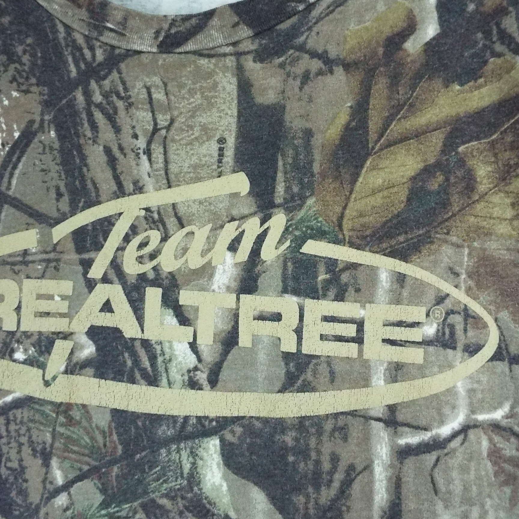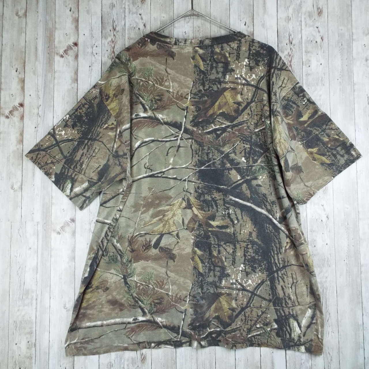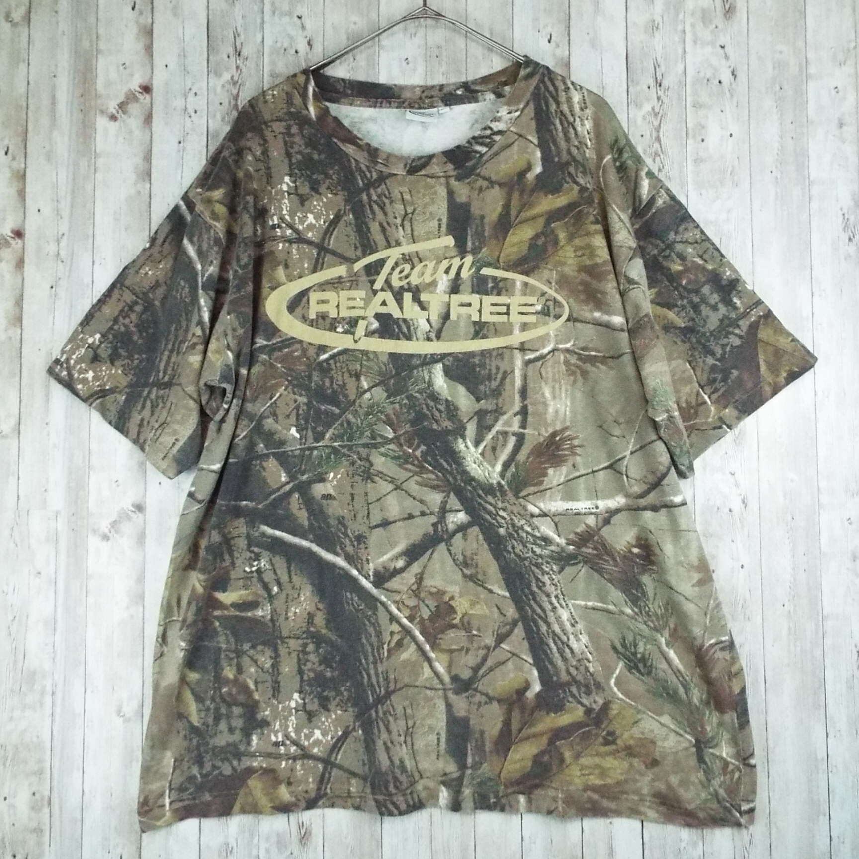 XL|REALTREE® TEAM 迷彩柄 カモフラージュ サバイバル サバゲー 前プリ 半袖Tシャツ グリーン・マルチカラー コットン100% US古着【湘南倉庫】ビッグサイズT