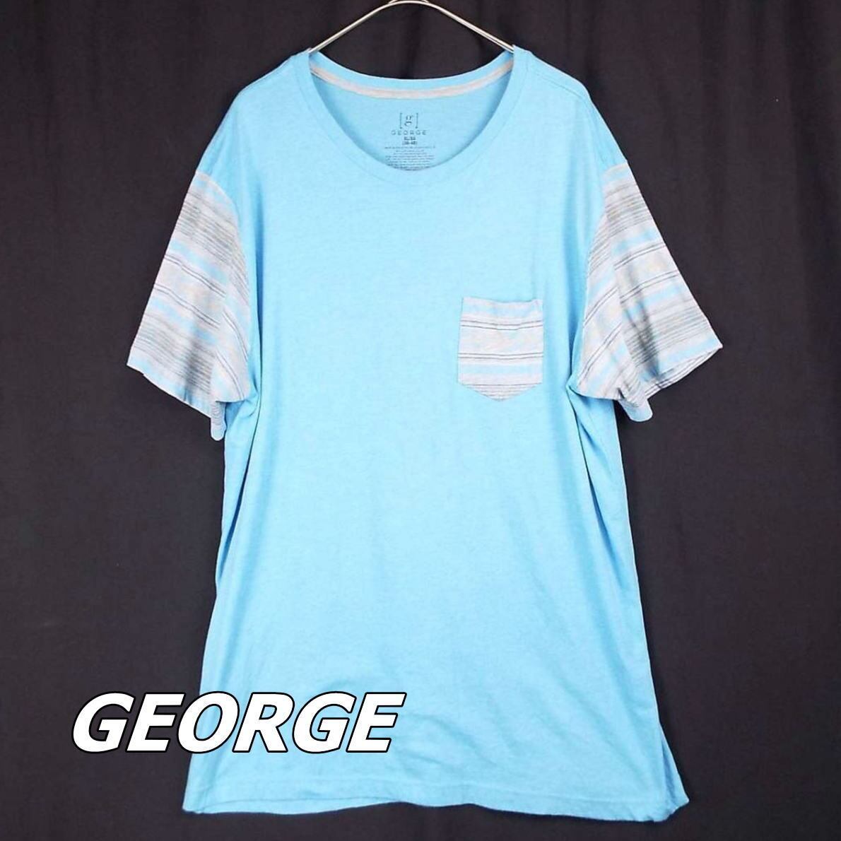 XL|GEORGE™ ポケット付き グラデーション 半袖Tシャツ スカイブルー コットン混 US古着【湘南倉庫】ビッグサイズT