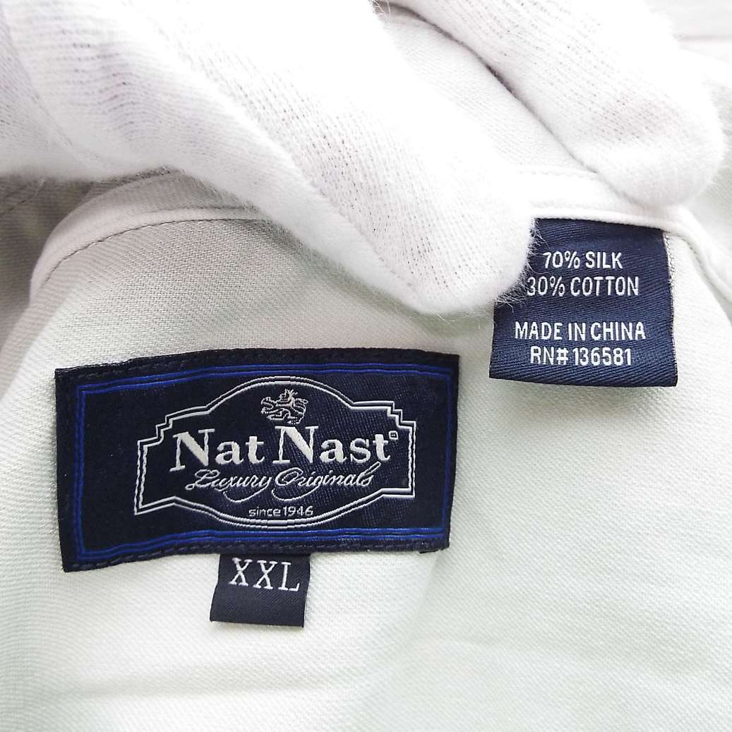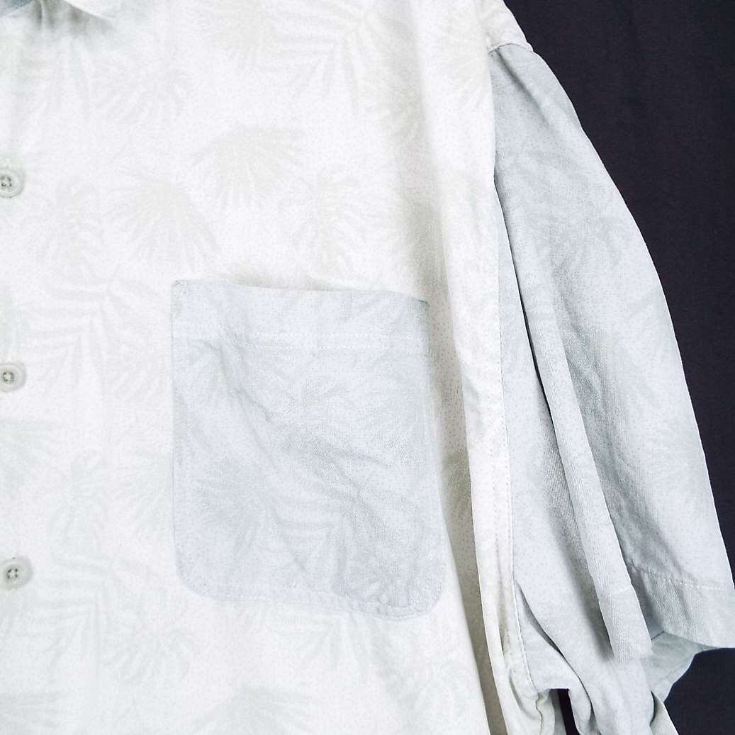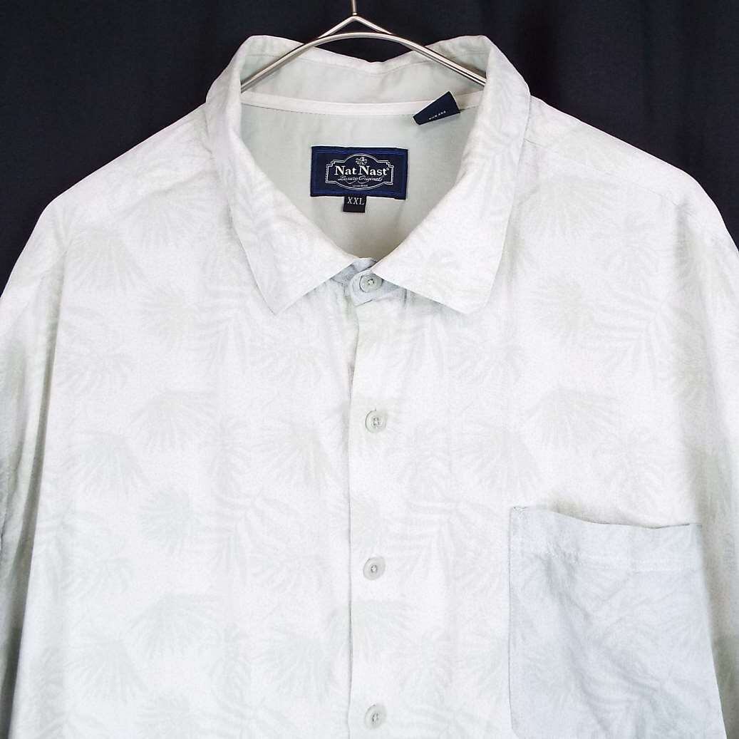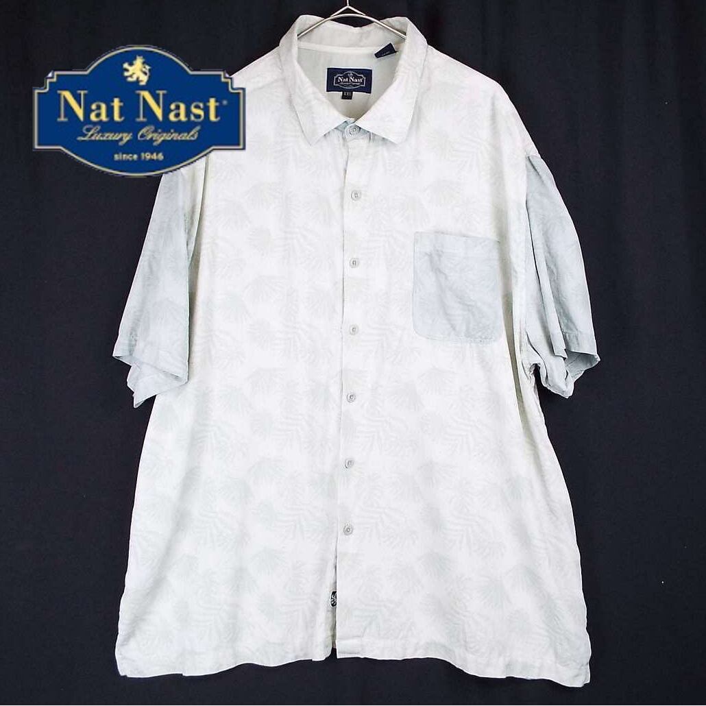 【肩幅57cm】Nat Nast® ナットナスト 切り替えデザイン リーフ 総柄 半袖シャツ XXL(2XL) ライトグリーン・グレー シルク70% 【湘南倉庫】USメンズ古着 ゆるだぼシャツ 大きいサイズ