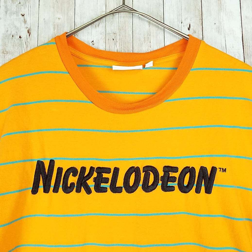 【レアTシャツ】nickelodeon™ SpongeBob スポンジボブ テレビ アニメ 刺繍 企業ロゴ 半袖Tシャツ XLサイズ(レディース・肩幅46cm)オレンジ コットン100% 【湘南倉庫】US古着