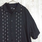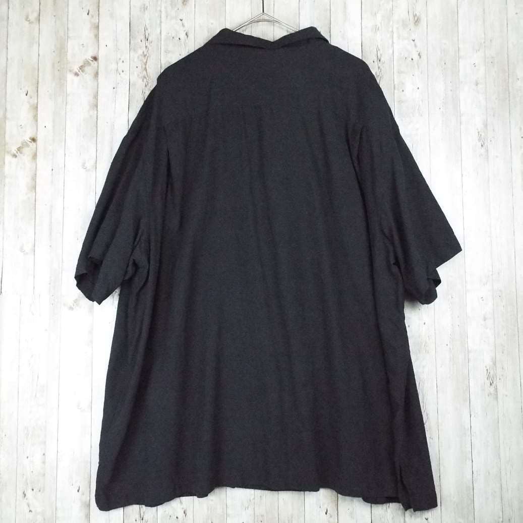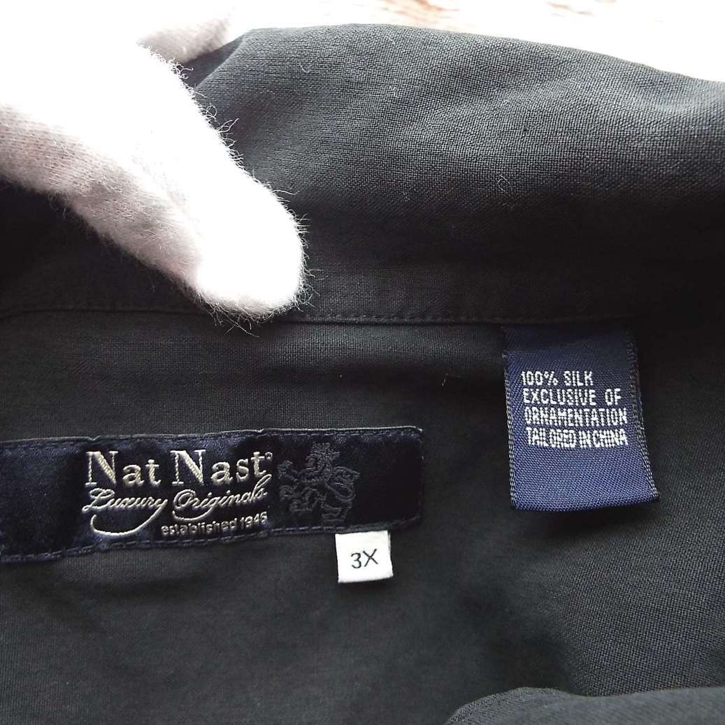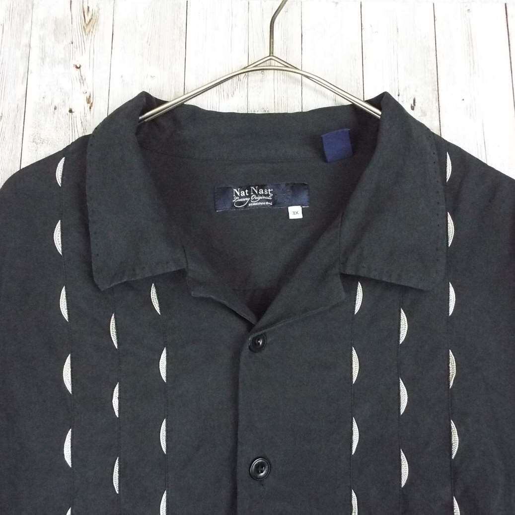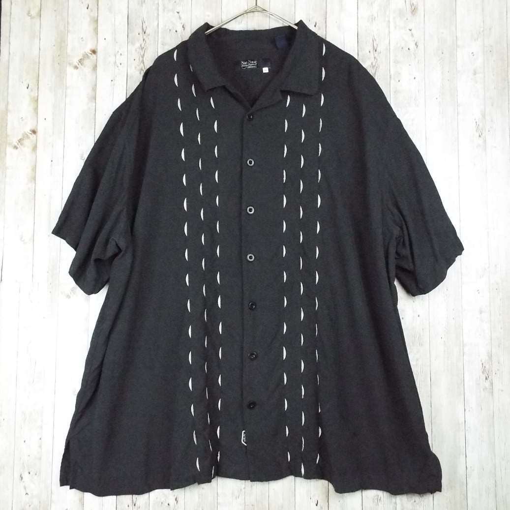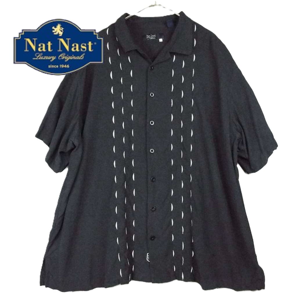 【肩幅62cm】Nat Nast® ナットナスト 50年代テイスト 切り替え 刺繍 ロゴ入りボタン 半袖 オープンシャツ 3XLサイズ ブラック ダメージ シルク100% US古着【湘南倉庫】ビッグサイズ