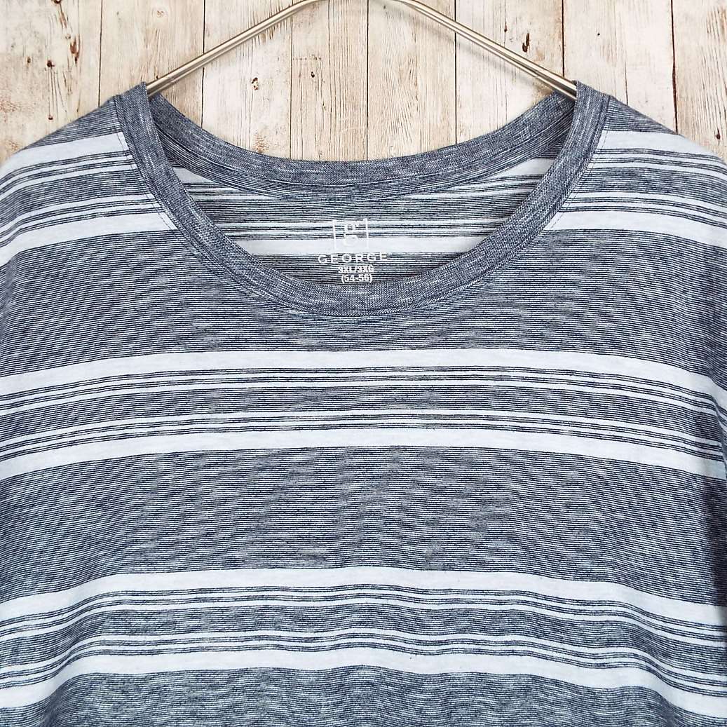 3XL(54/56)|GEORGE 霜降り ストライプ ボーダー 半袖Tシャツ 杢ブルー・ライトグレー コットン混 US古着【湘南倉庫】ビッグサイズT