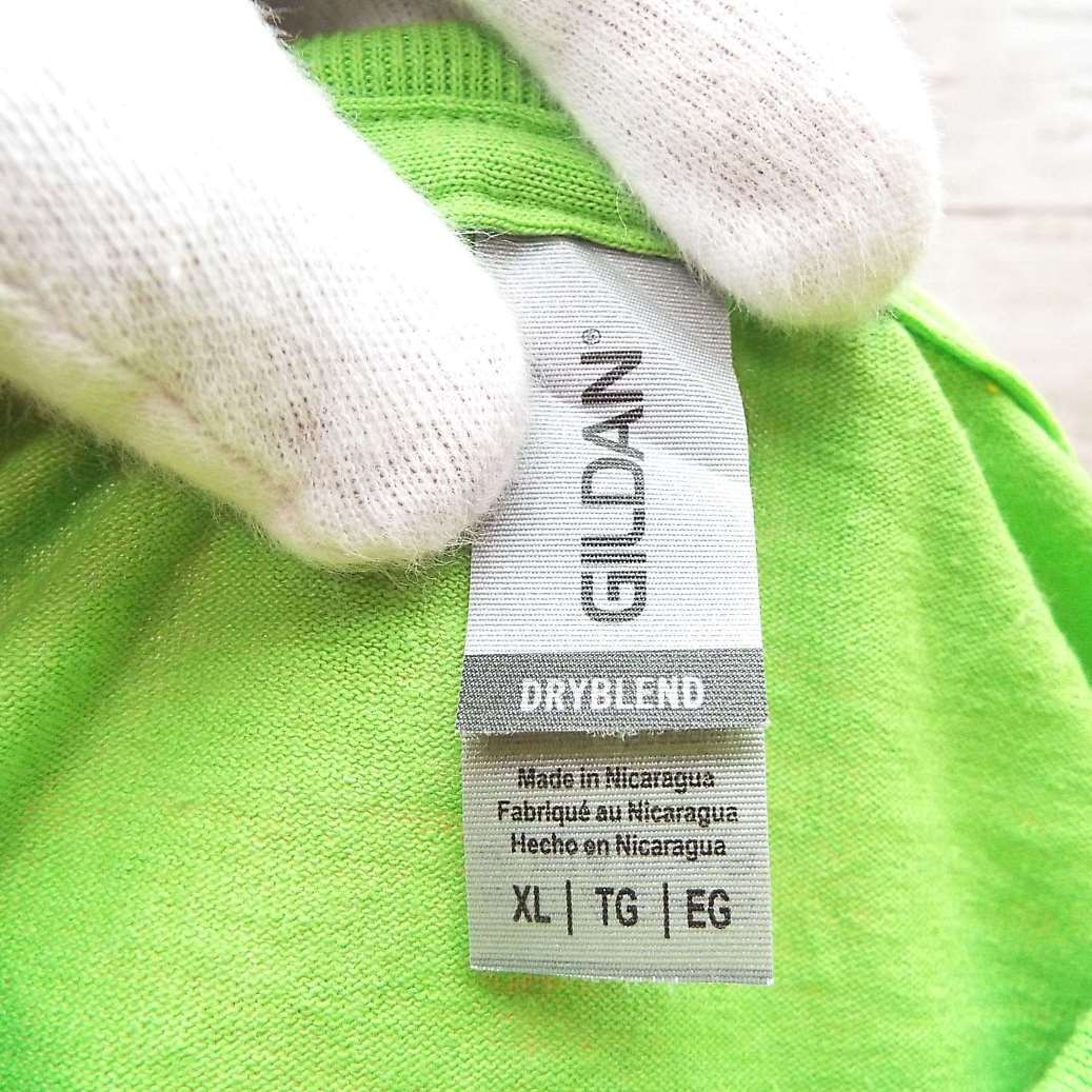 XL|GILDAN TRI-HEALTHY.COM CBD メイプルリーフ ラバープリント 企業系 前プリ 両面プリント 半袖Tシャツ ライムグリーン コットン混 US古着【湘南倉庫】ビッグサイズT