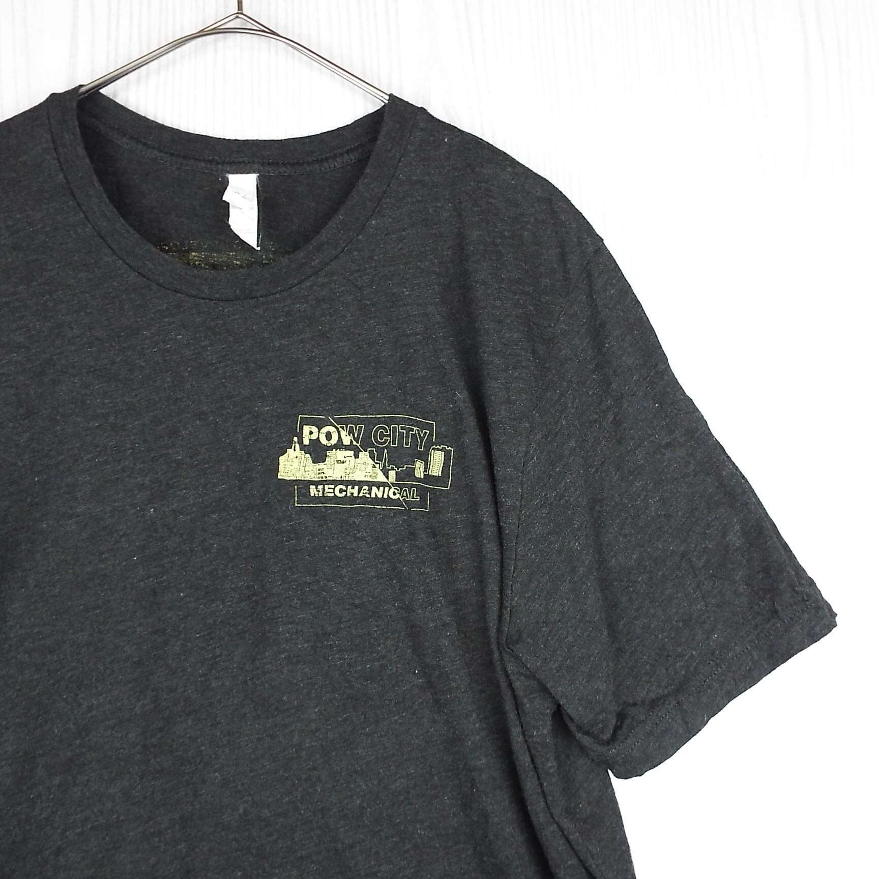 レディースXL|CANVAS POW CITY MECHANICAL グラフィック 両プリ 半袖Tシャツ 杢ブラック コットン混 US古着【湘南倉庫】ビッグサイズTシャツ