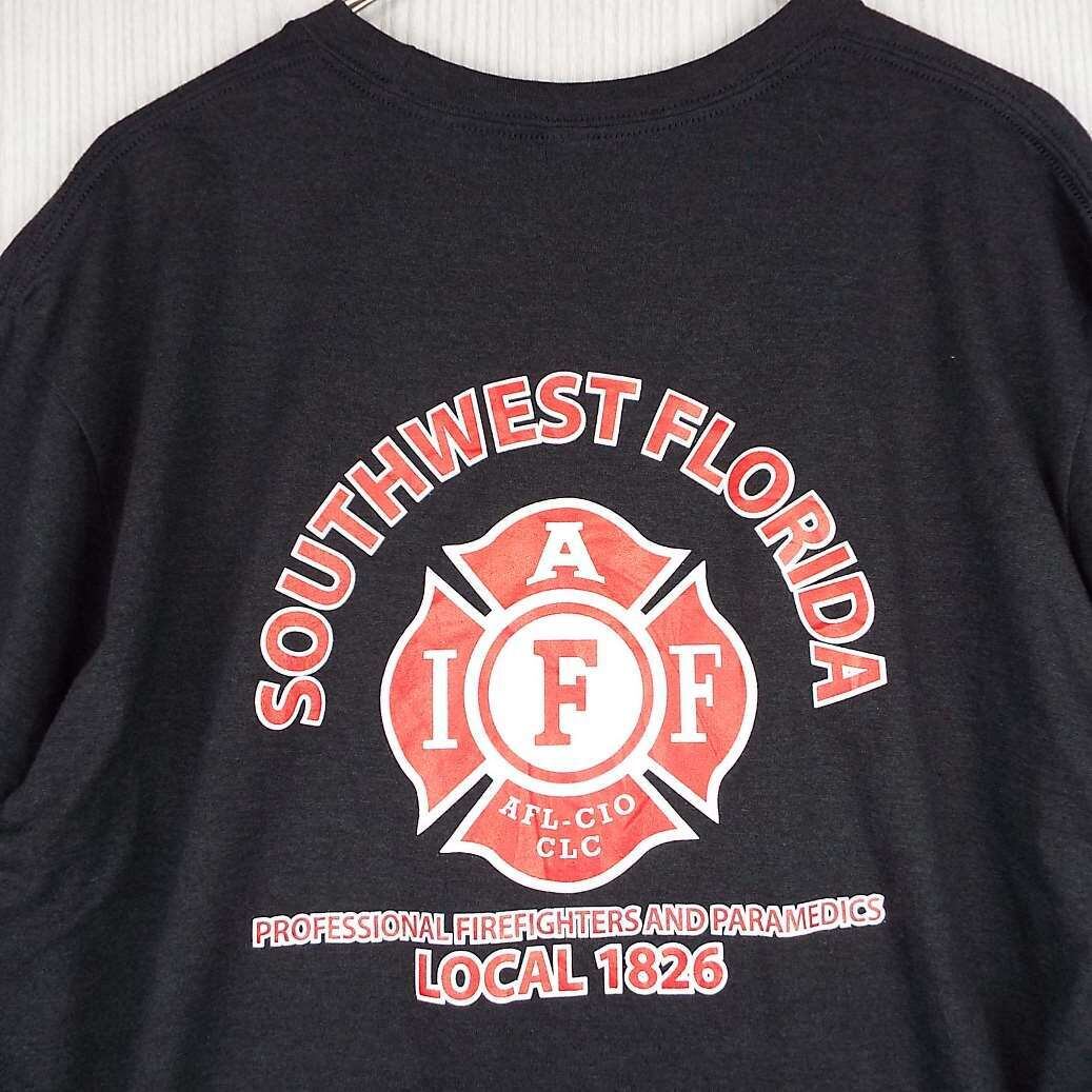L|SOUTHWEST FLORIDA firefighters 1826 消防士 救急隊員 消防署 両面プリ ラバープリント グラフィック 半袖Tシャツ ブラック コットン US古着【湘南倉庫】