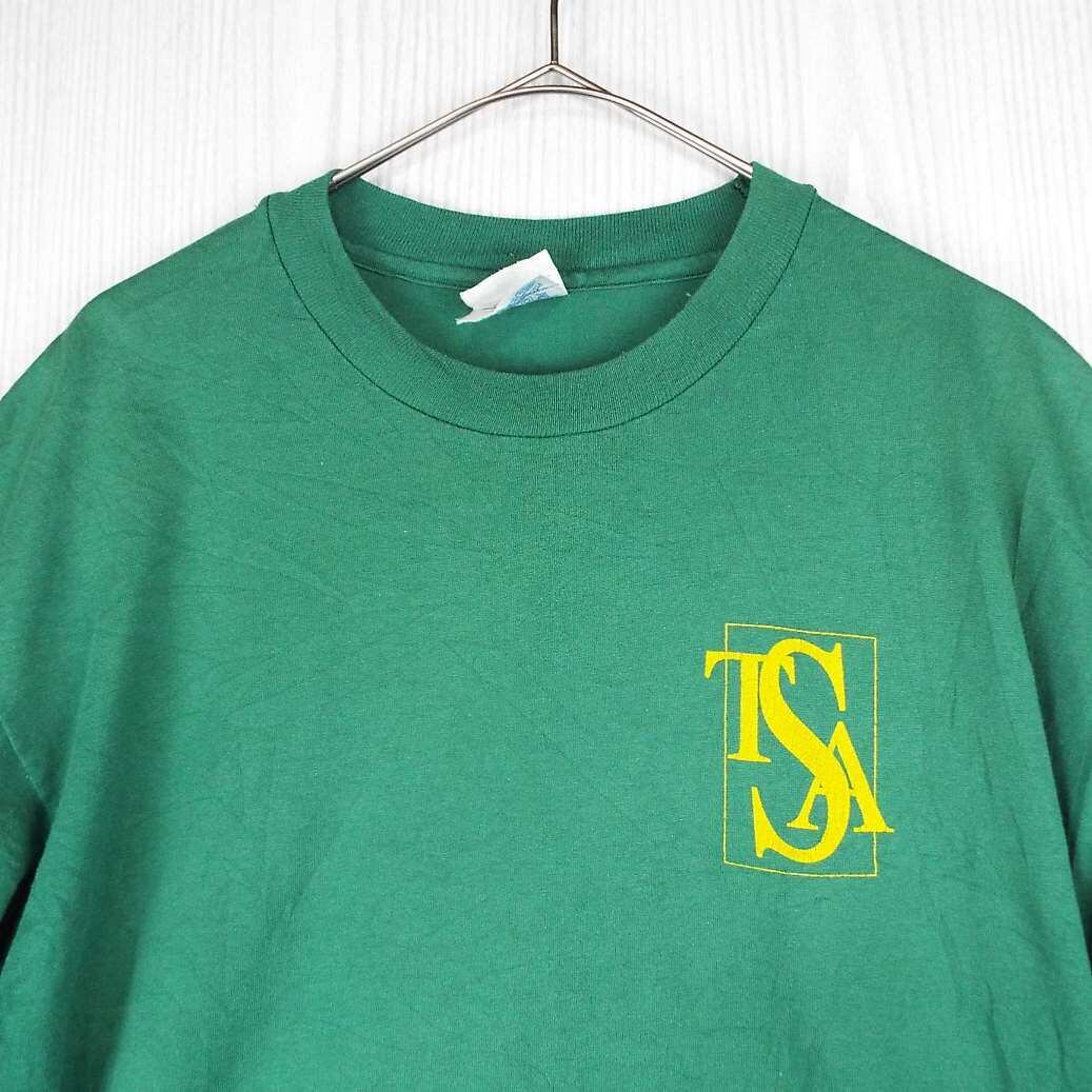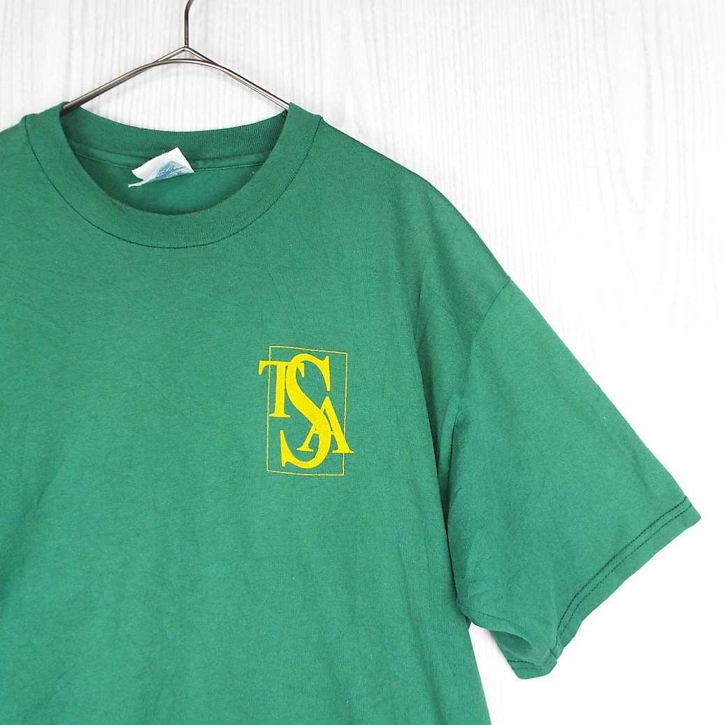 L(42‐44)|90年代タグ Hanes ヘインズ TSA ひび割れプリント ワンポイント 胸プリ 半袖Tシャツ グリーン US古着【湘南倉庫】ビッグサイズTシャツ