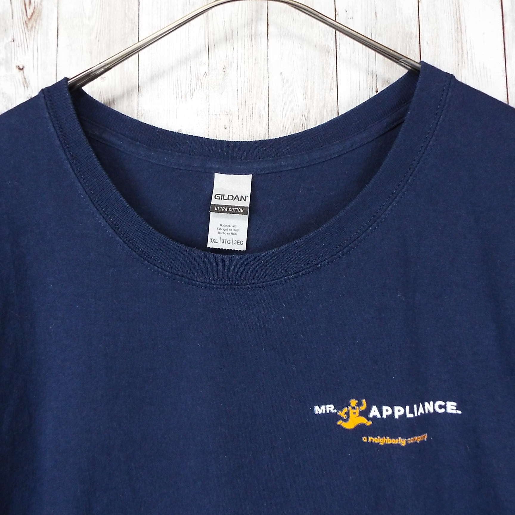 【肩幅68cm】GILDAN ギルダン MR.APPLIANCE® 企業系 キャラクター 両面プリント 半袖Tシャツ 3XLサイズ ネイビー コットン100% US古着【湘南倉庫】ビッグサイズ ゆるだぼ T50