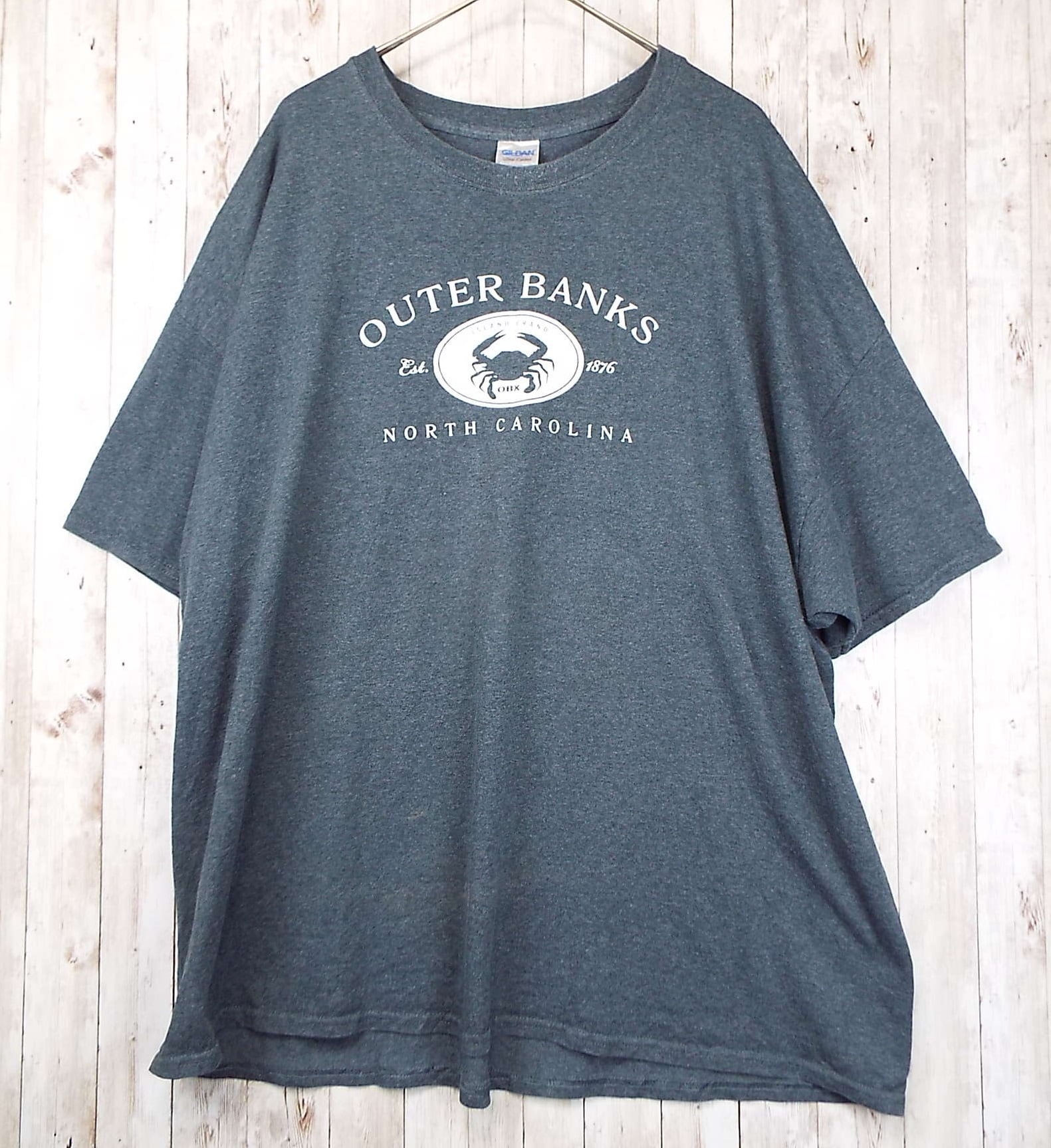 【肩幅68cm】GILDAN ギルダン OUTER BANKS 1876 NORTH CAROLINA ノース・カロライナ 蟹 プリント 半袖Tシャツ 3XLサイズ グレー コットン混 US古着【湘南倉庫】アメリカ古着 T50