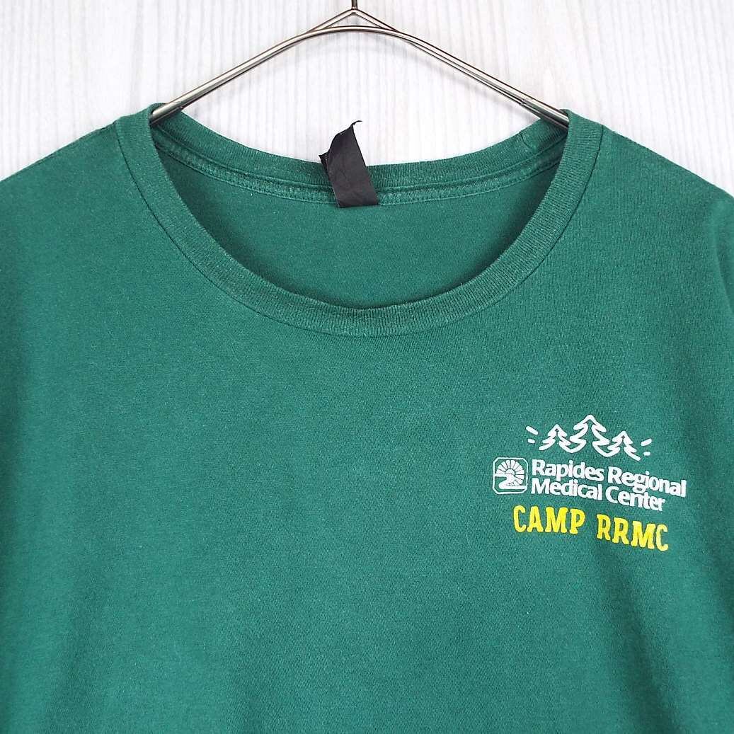 2XL|DISTRICT® HOSPITAL WEEK 2018 CAMP キャンプ アドベンチャー 両面プリント 半袖Tシャツ グリーン コットン100% US古着【湘南倉庫】メンズTシャツ