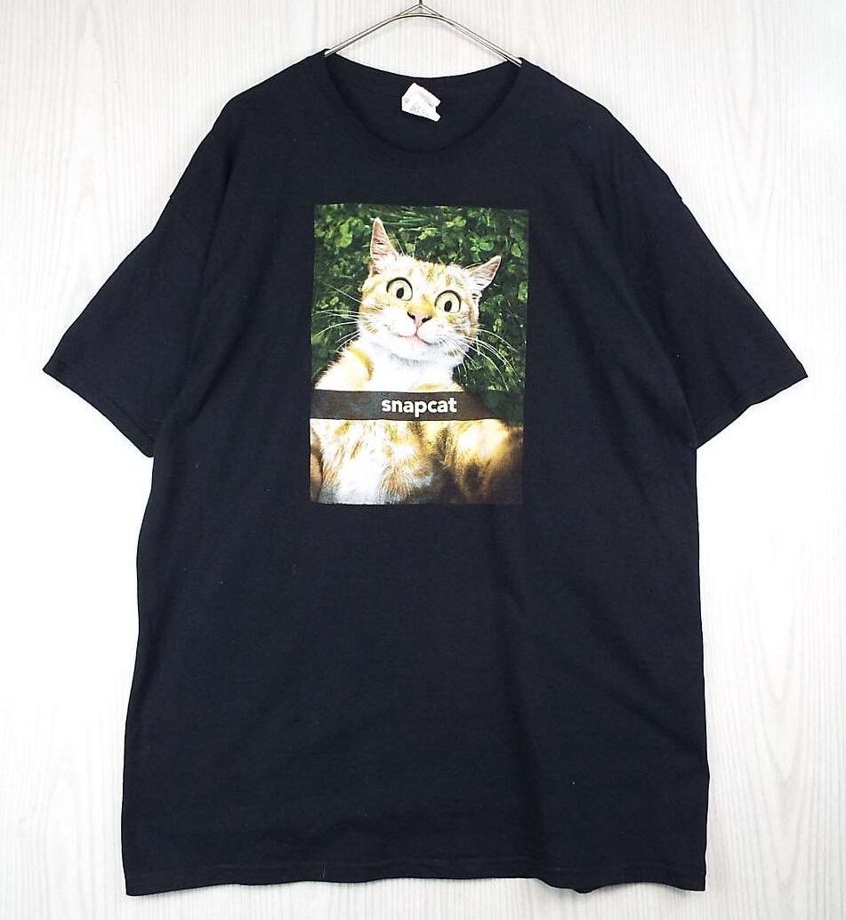 XLサイズ|00’s FRUIT OF THE LOOM snapcat ネコちゃん 猫 動物柄 前プリ 半袖Tシャツ ブラック コットン100% US古着【湘南倉庫】メンズTシャツ