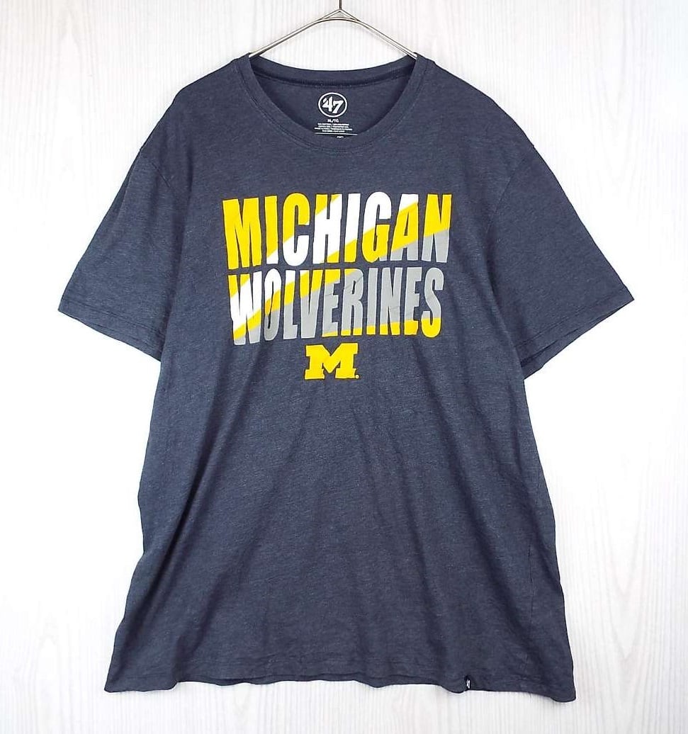 【カレッジロゴTシャツ】47brand University of Michigan WOLVERINES ミシガン大学 チーム 前プリ 半袖Tシャツ XLサイズ 霜降りグレー 【湘南倉庫】USメンズ古着