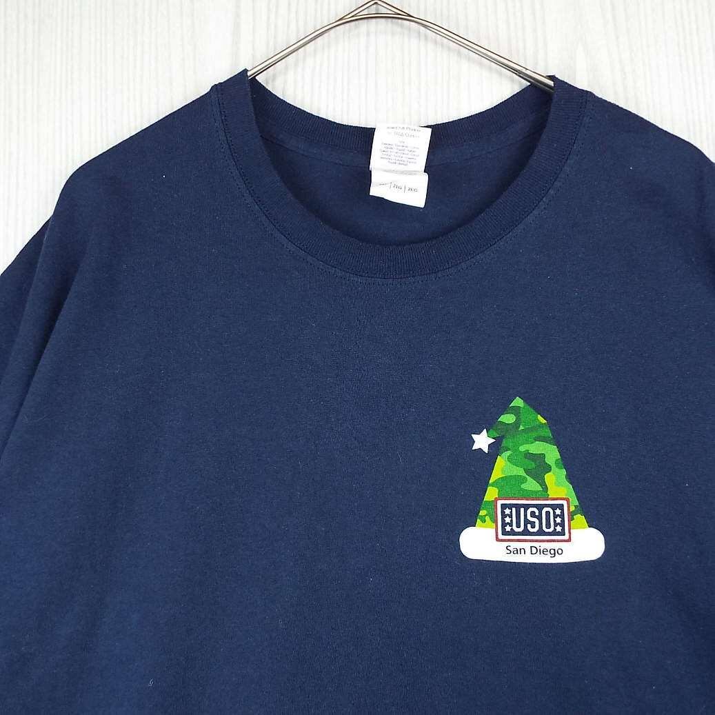 2XL|GILDAN USO sandiego GIVE to Those Who Give the Most グラフィックデザイン 両面プリント 半袖Tシャツ ネイビー コットン100% US古着【湘南倉庫】メンズTシャツ