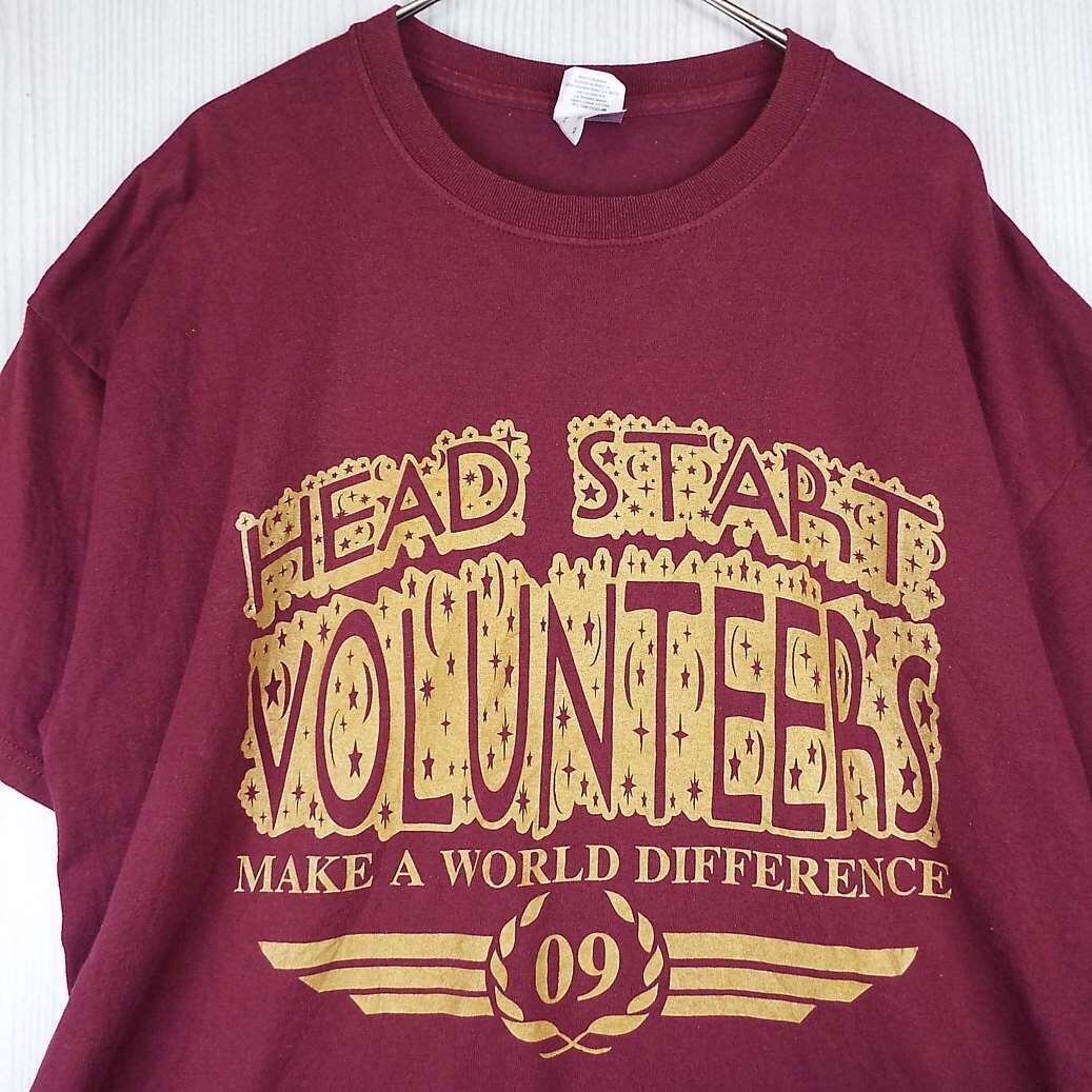 XLサイズ|00's GILDAN HEAD START VOLUNTEERS MAKE A WORLD DIFFERENCE 2009 グラフィック 前プリ 半袖Tシャツ ワインレッド コットン50/50 US古着【湘南倉庫】メンズTシャツ