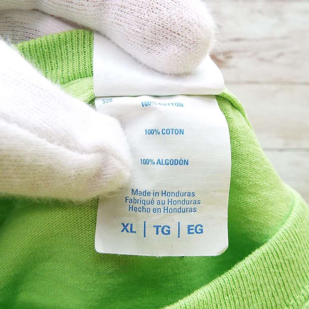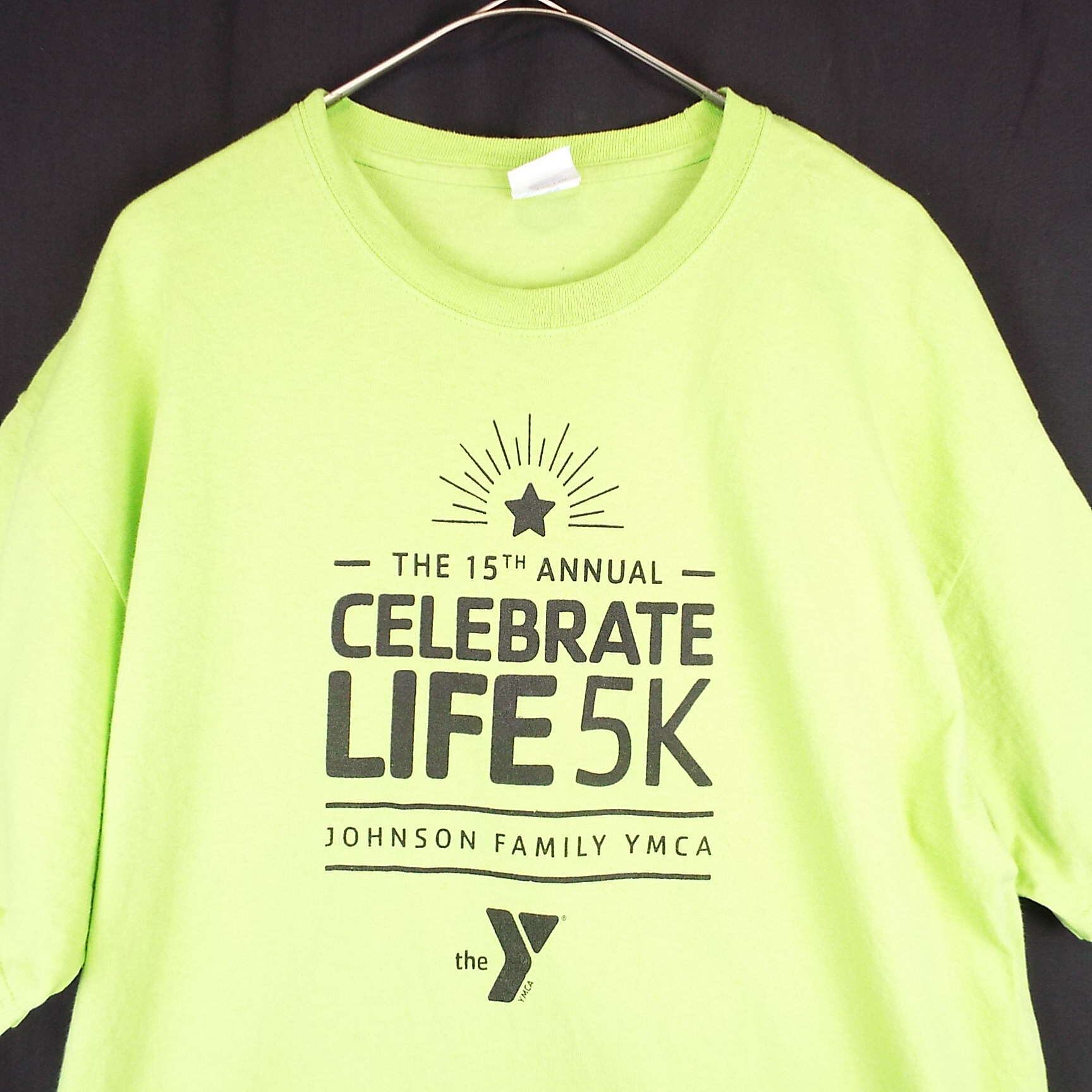 レタードT XL|PORT AND COMPANY JOHNSON FAMILY YMCA THE 15TH 企業ロゴ 英文字メッセージ 両面プリ 半袖Tシャツ ライムグリーン コットン100% US古着【湘南倉庫】メンズTシャツ