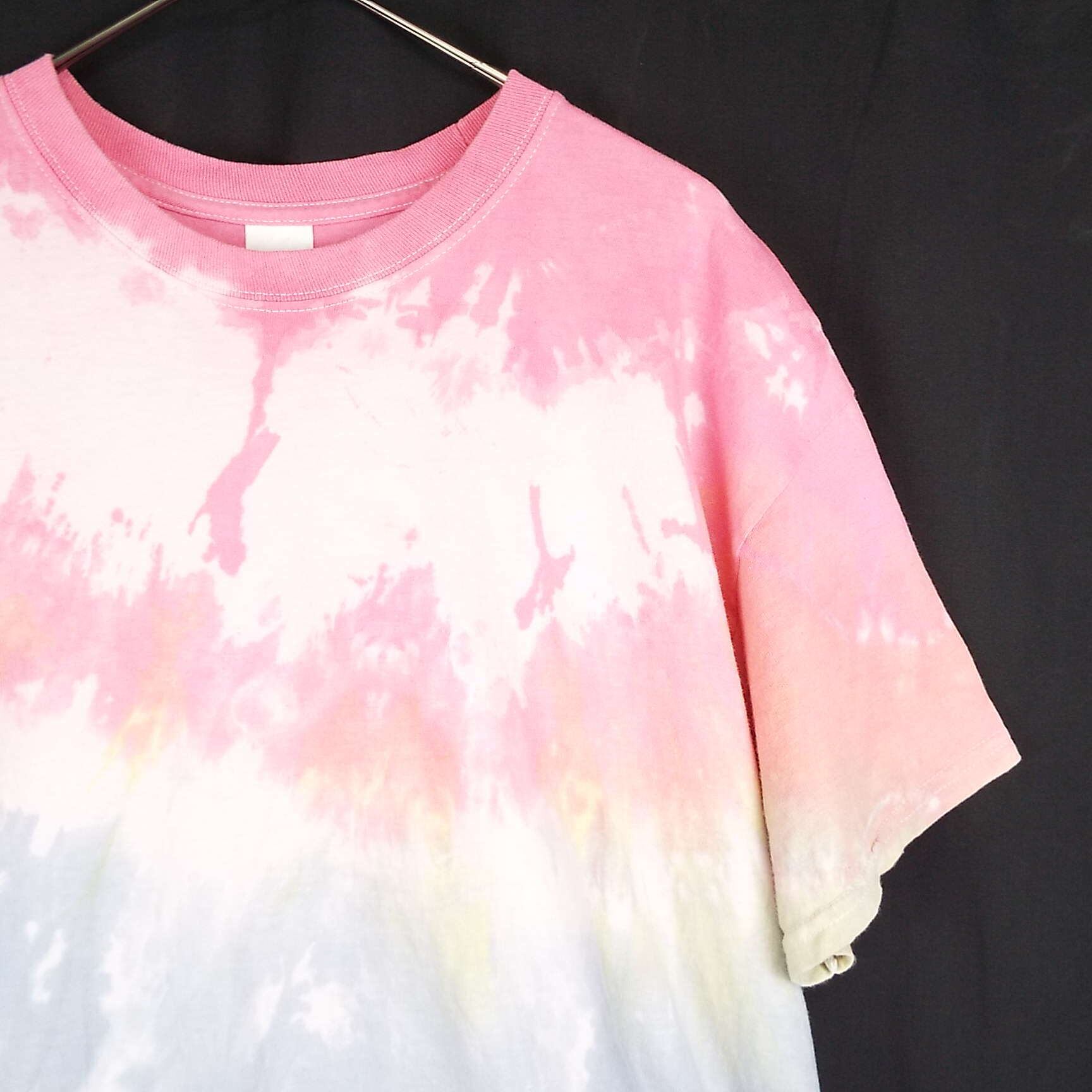 L|GILDAN SUPERHEROES DAY CAMP 2018 タイダイ染 グラデーション 半袖Tシャツ ホワイト・ピンク・ブルー コットン100% US古着【湘南倉庫】メンズ 白Tシャツ
