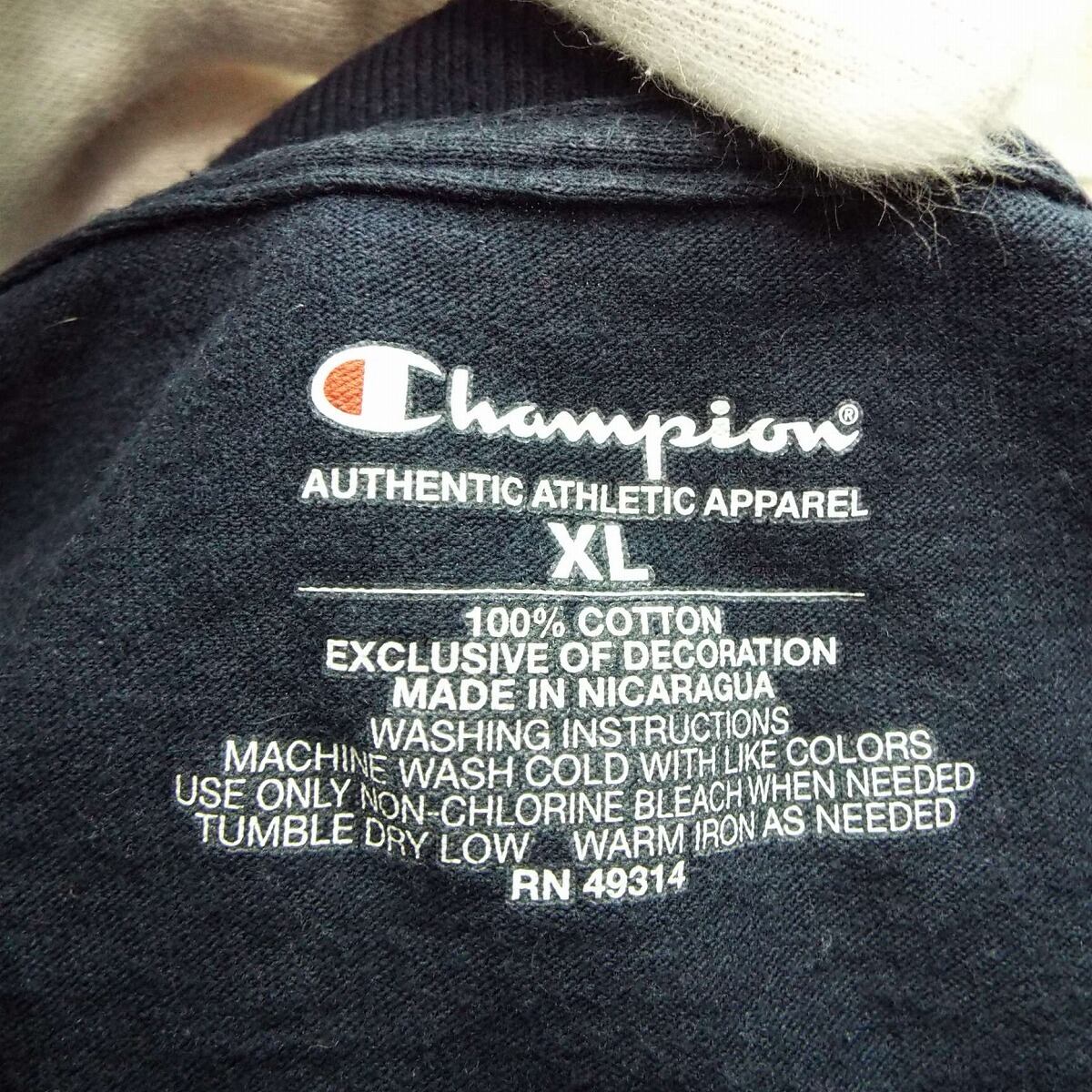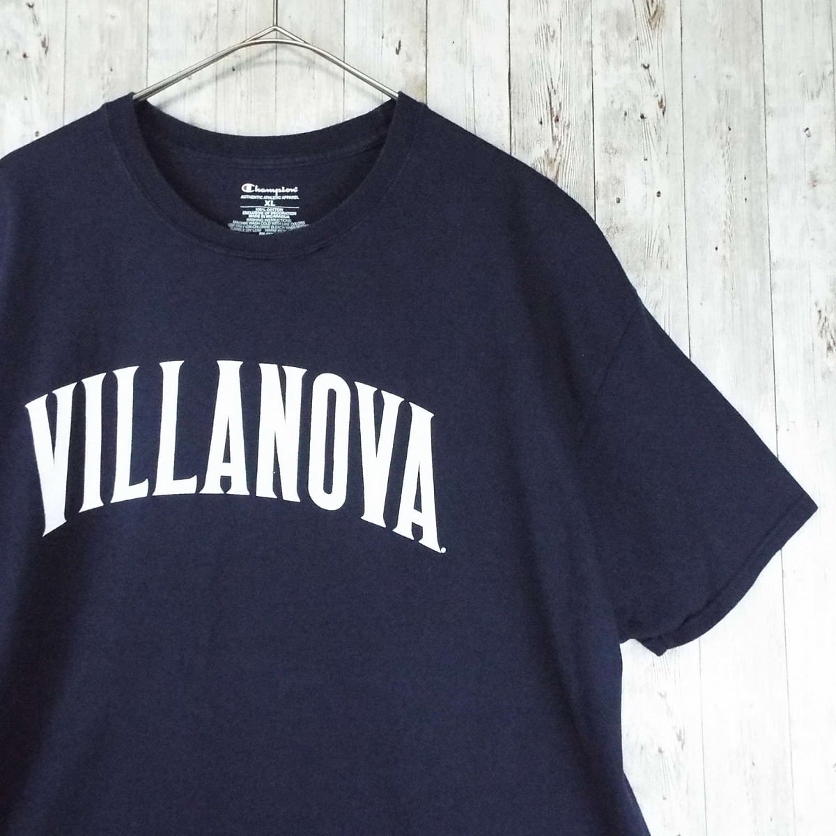 XL|Champion VILLANOVAr® University ビラノバ大学 カレッジ系 アーチロゴ 袖ロゴ ワンポイント 前プリ 半袖Tシャツ ネイビー コットン100% US古着【湘南倉庫】メンズTシャツ
