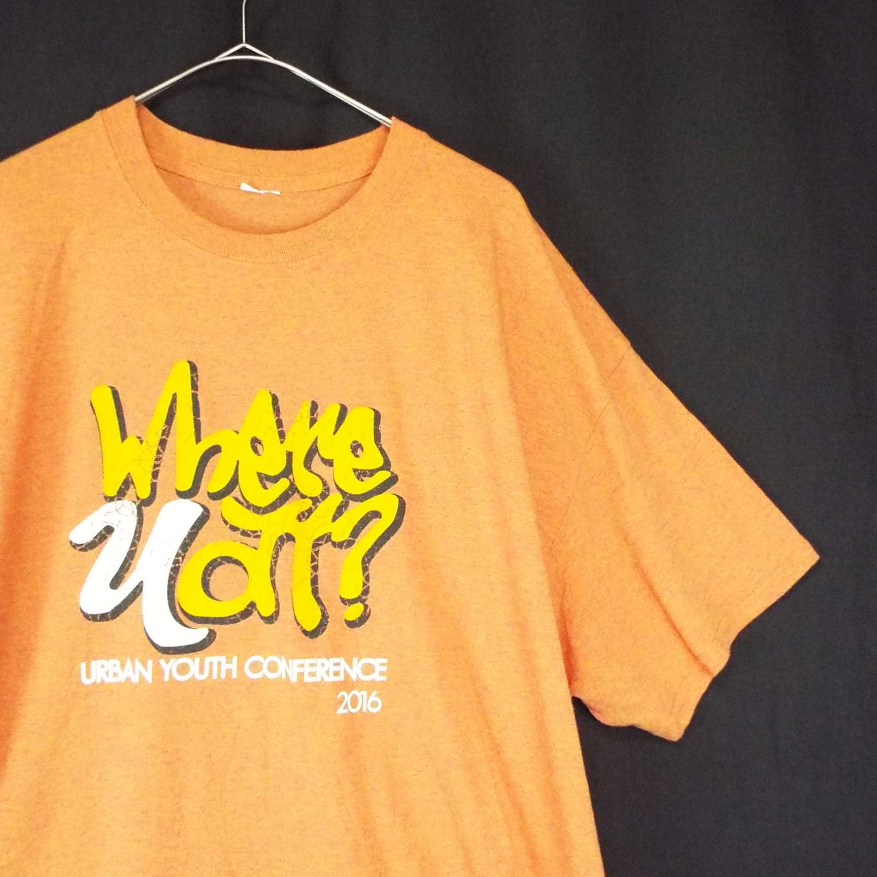 【カレッジTシャツ】GILDAN Cornerstone UNIVERSITY® コーナーストーン大学 英文字 メッセージ 両面プリ 半袖Tシャツ XLサイズ 霜降りオレンジ US古着【湘南倉庫】US古着 ビッグサイズ