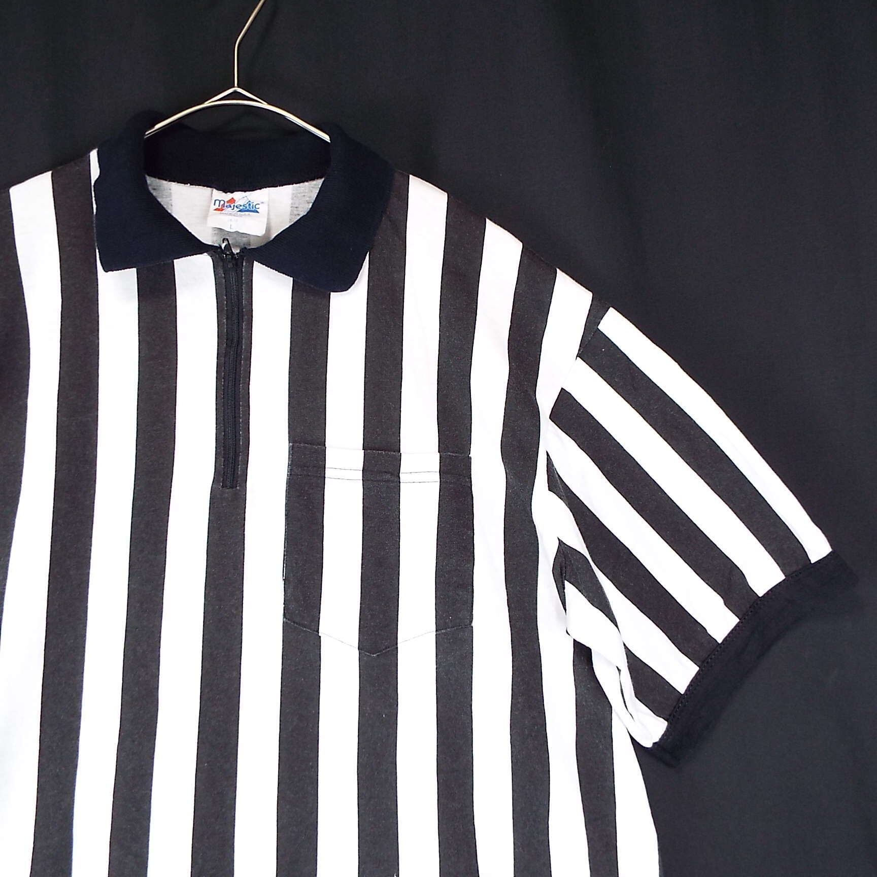 USA製 90年代 Majestic(マジェスティック)ハーフジップ ストライプ 半袖シャツ Lサイズ ブラック・ホワイト【湘南倉庫】90s USメンズ古着 12344338