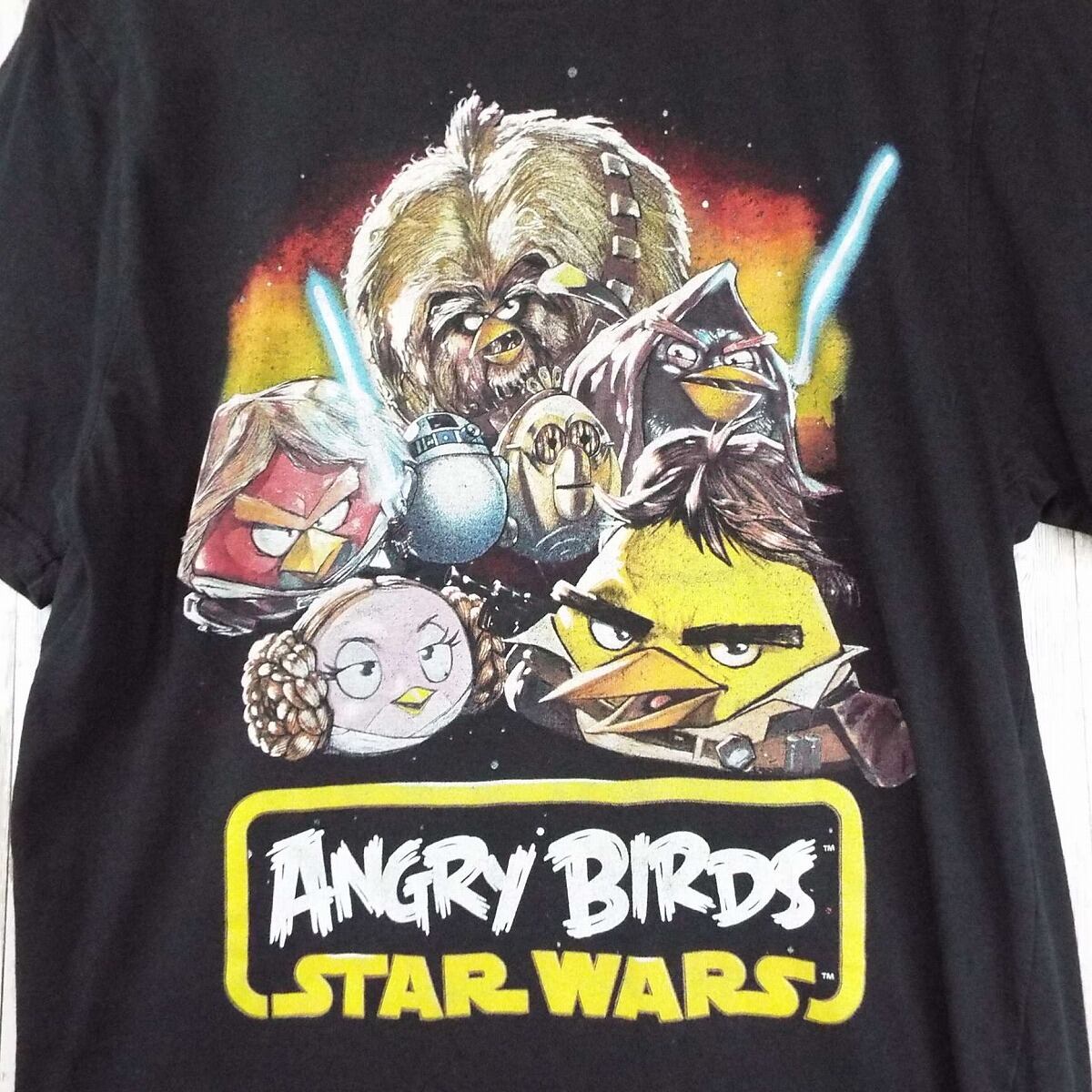S|ANGRY BIRDS STAR WARS アングリーバード スターウォーズ キャラクター 前プリ 半袖Tシャツ ブラック コットン100% US古着【湘南倉庫】メンズサイズ