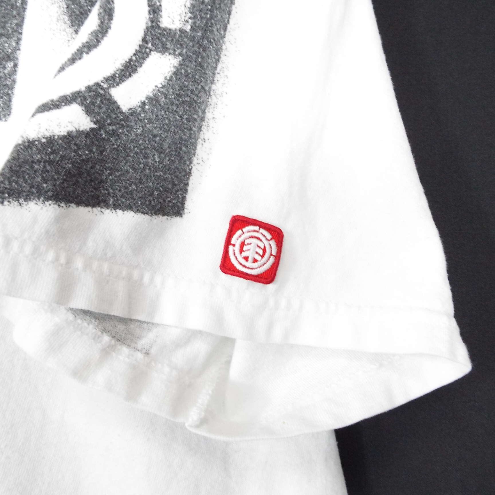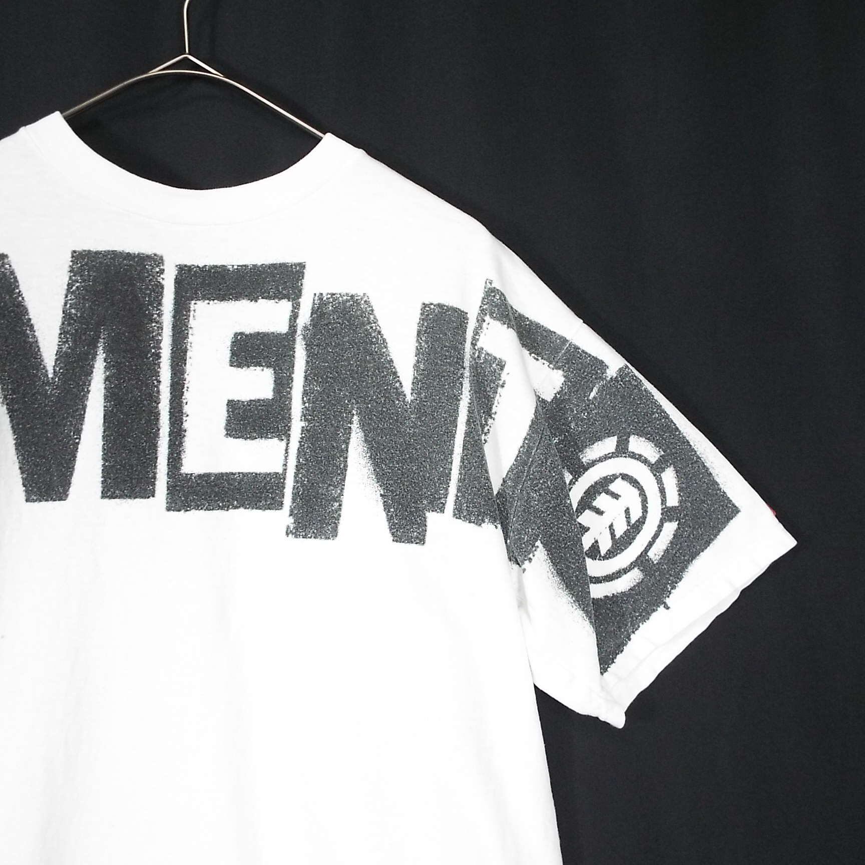 【肩幅50cm】ELEMENT エレメント グラフティロゴ ヴィンテージ風 プリント 半袖Tシャツ Lサイズ ホワイト コットン100% US古着【湘南倉庫】メンズサイズ 白Tシャツ