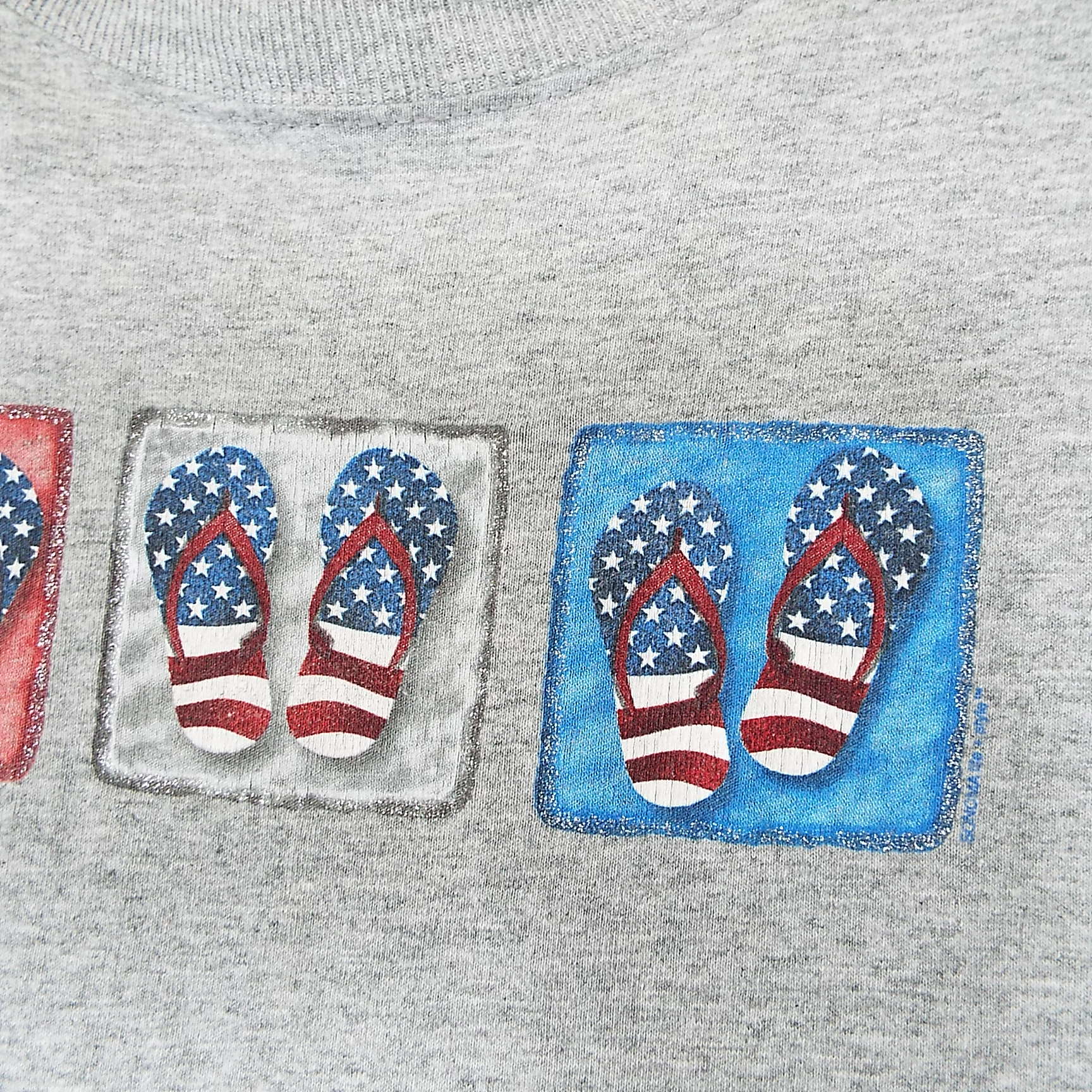 【肩幅62cm】SONOMA ソノマ星条旗 サンダル ラメ入りプリント 半袖Tシャツ 2XLサイズ ライトグレー コットン混 US古着【湘南倉庫】アメカジ