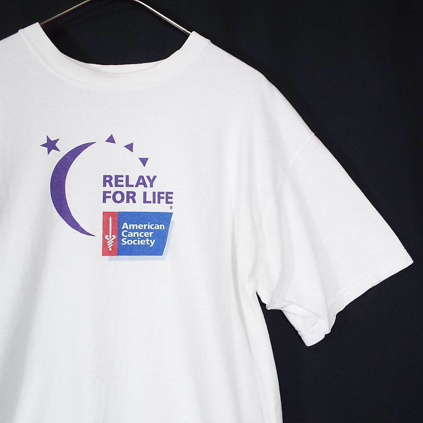 【肩幅52cm】anvil アンビル RELAY FOR LIFE® American Cancer Society 両面プリント 半袖Tシャツ Lサイズ ホワイト コットン100% US古着【湘南倉庫】メンズサイズ 白Tシャツ