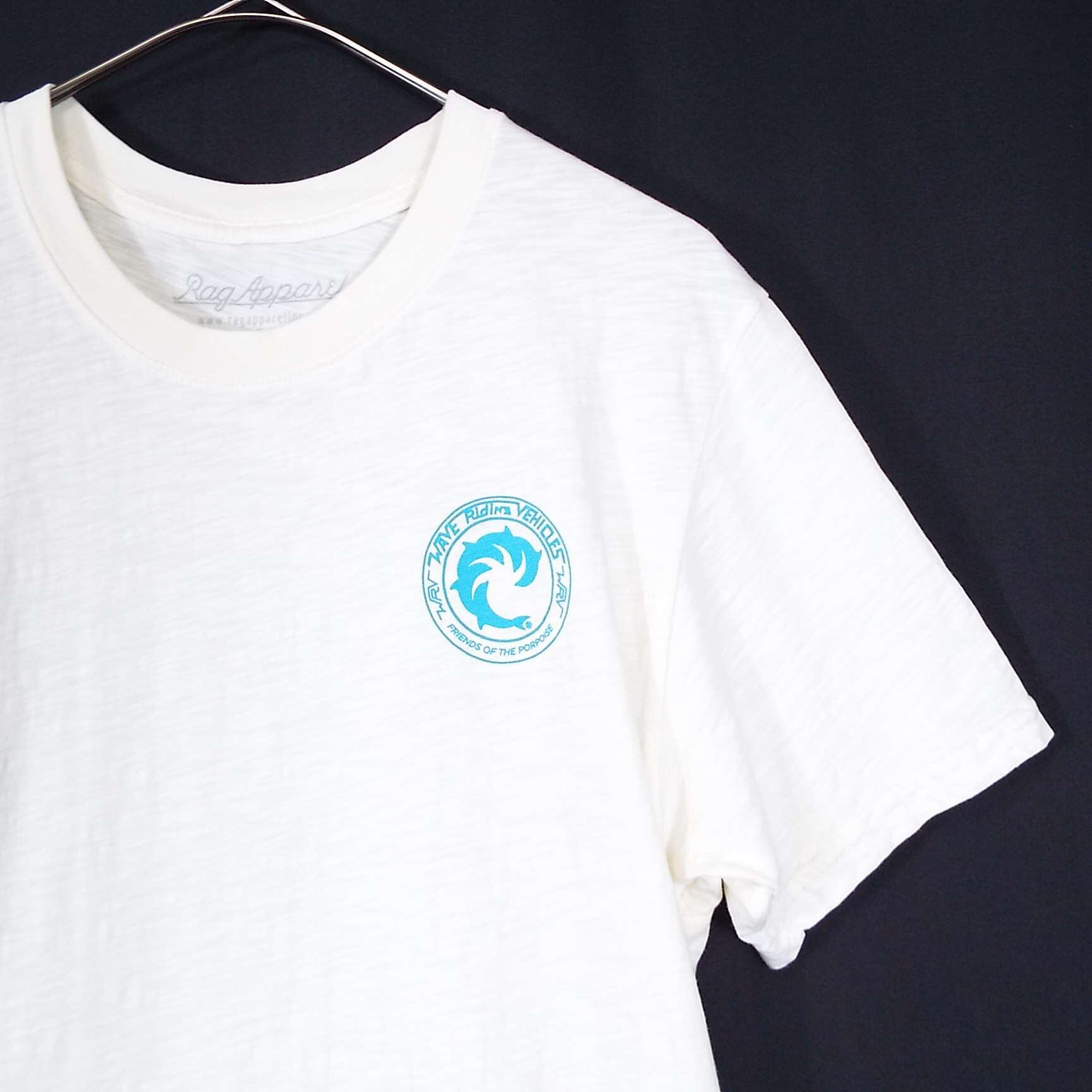 ◎肩幅43cm◎【サーフブランド】RagApparel ラグアパレル WAVE Riding Vehices ドルフィン イルカ サーフィン サーフボード 両面プリント 半袖Tシャツ オフホワイト(アイボリー )コットン100% 【湘南倉庫】USA古着 T42
