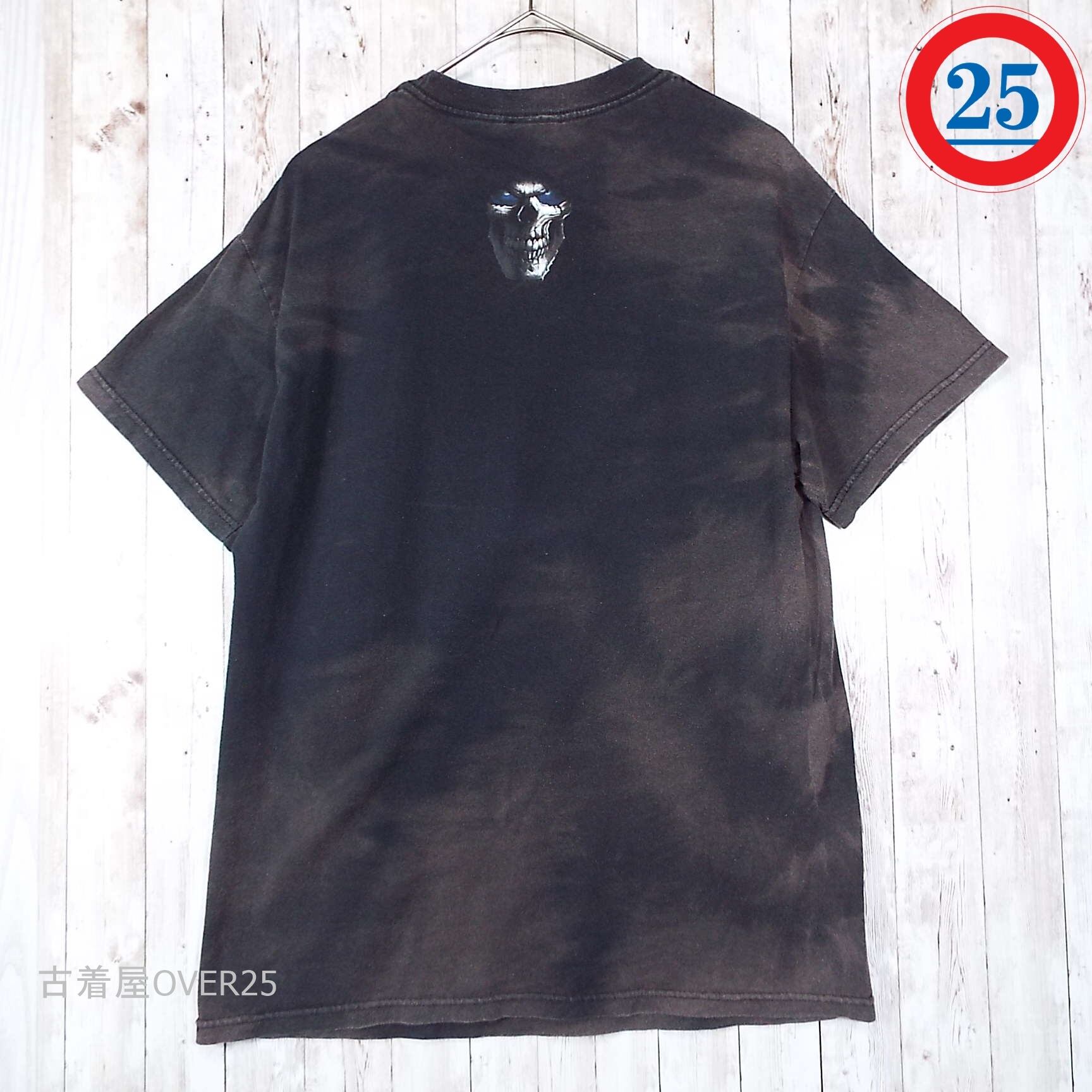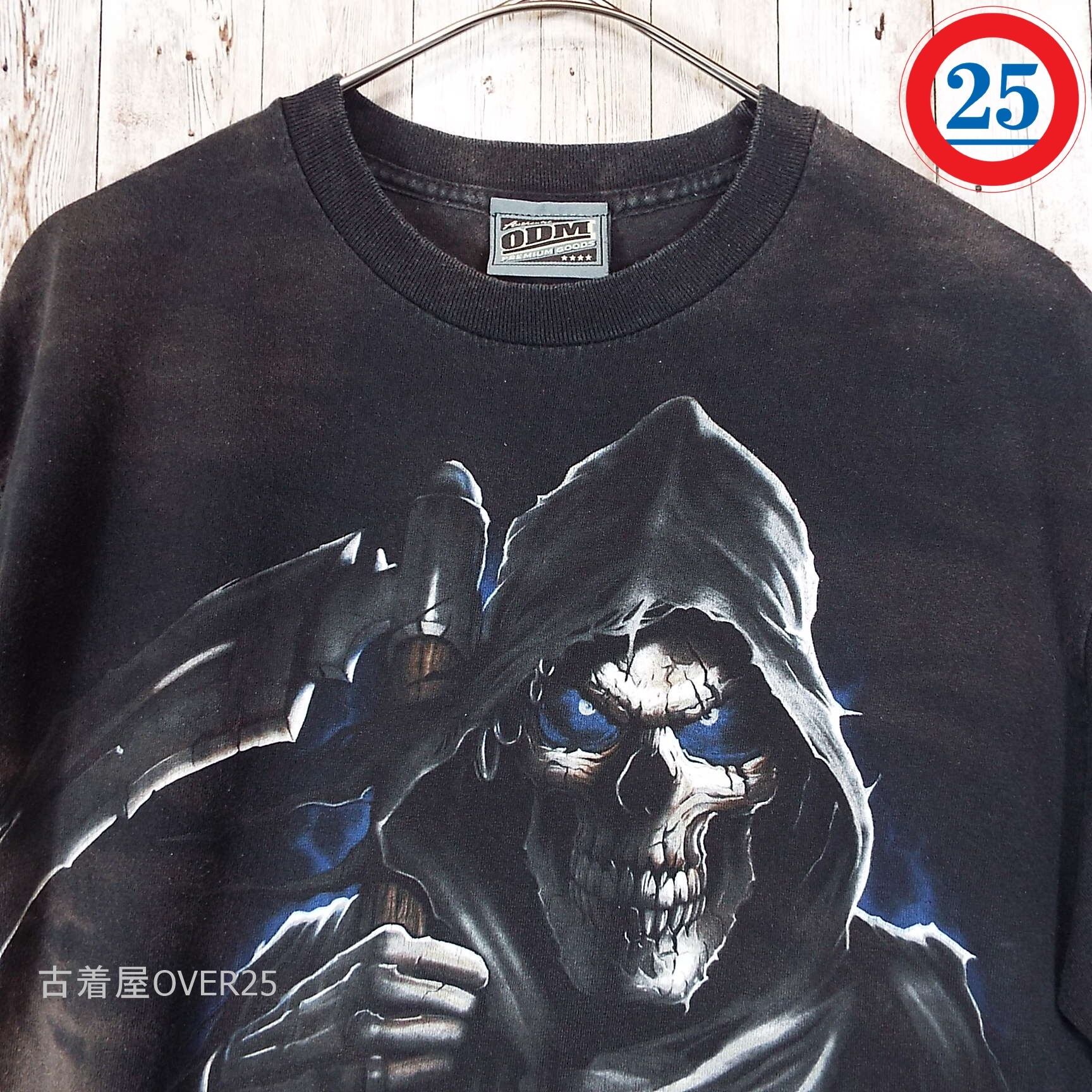 Mサイズ|メキシコ製 ODM 死神 Death 骸骨 ガイコツ ドクロ スカル クールネック 半袖Tシャツ ブラック【湘南倉庫】タイダイ染・ブリーチTシャツ