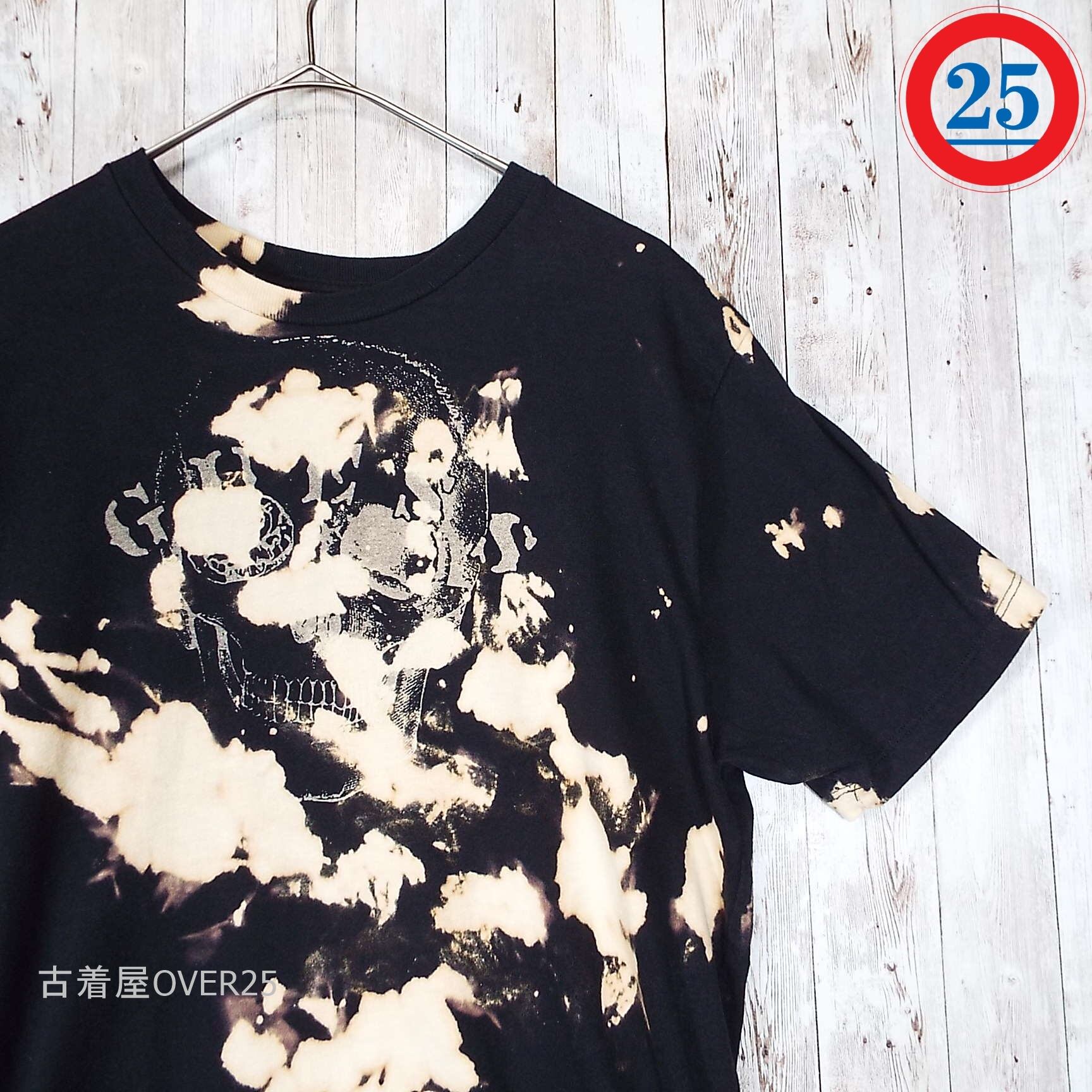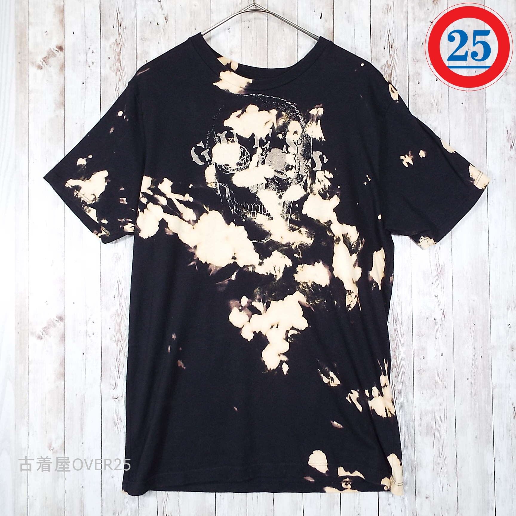 Sサイズ|GUESS JEANS 骸骨 ガイコツ ドクロ スカル グラフィック クールネック 半袖Tシャツ ブラック【湘南倉庫】タイダイ染・ブリーチTシャツ
