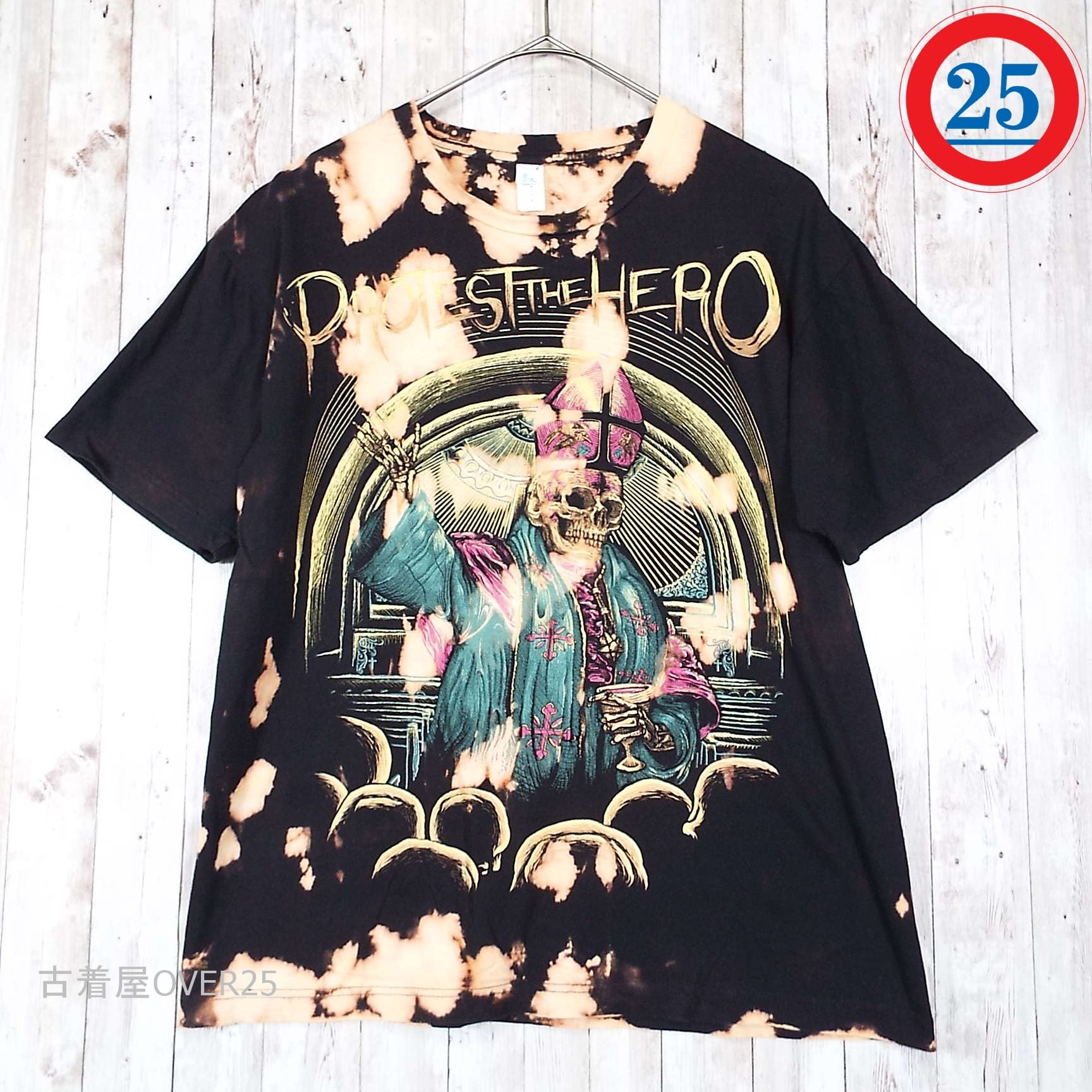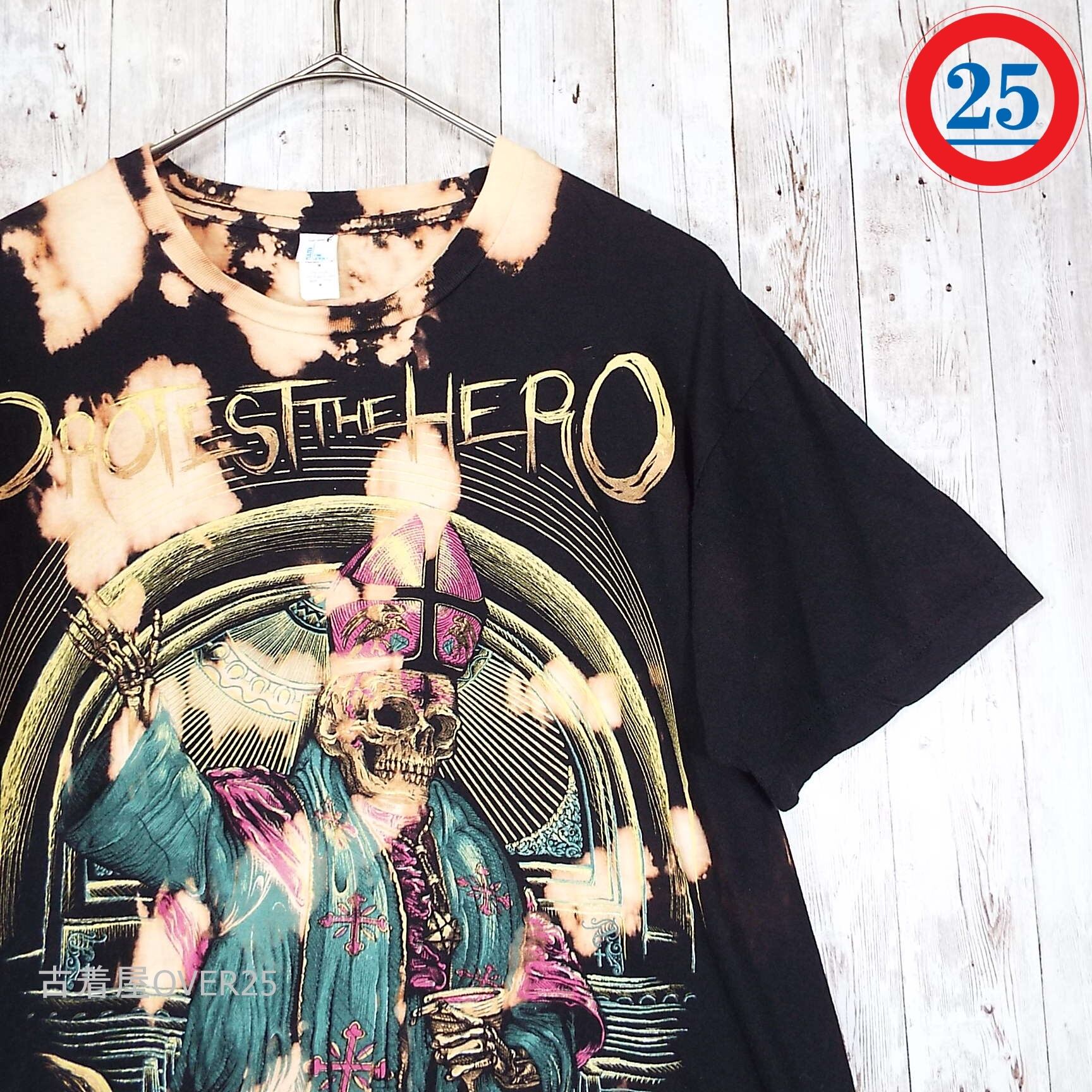 Mサイズ|TULTEX PROTEST THE HERO 骸骨 ガイコツ ドクロ スカル 王様 全面プリント クールネック 半袖Tシャツ ブラック【湘南倉庫】タイダイ染・ブリーチ加工