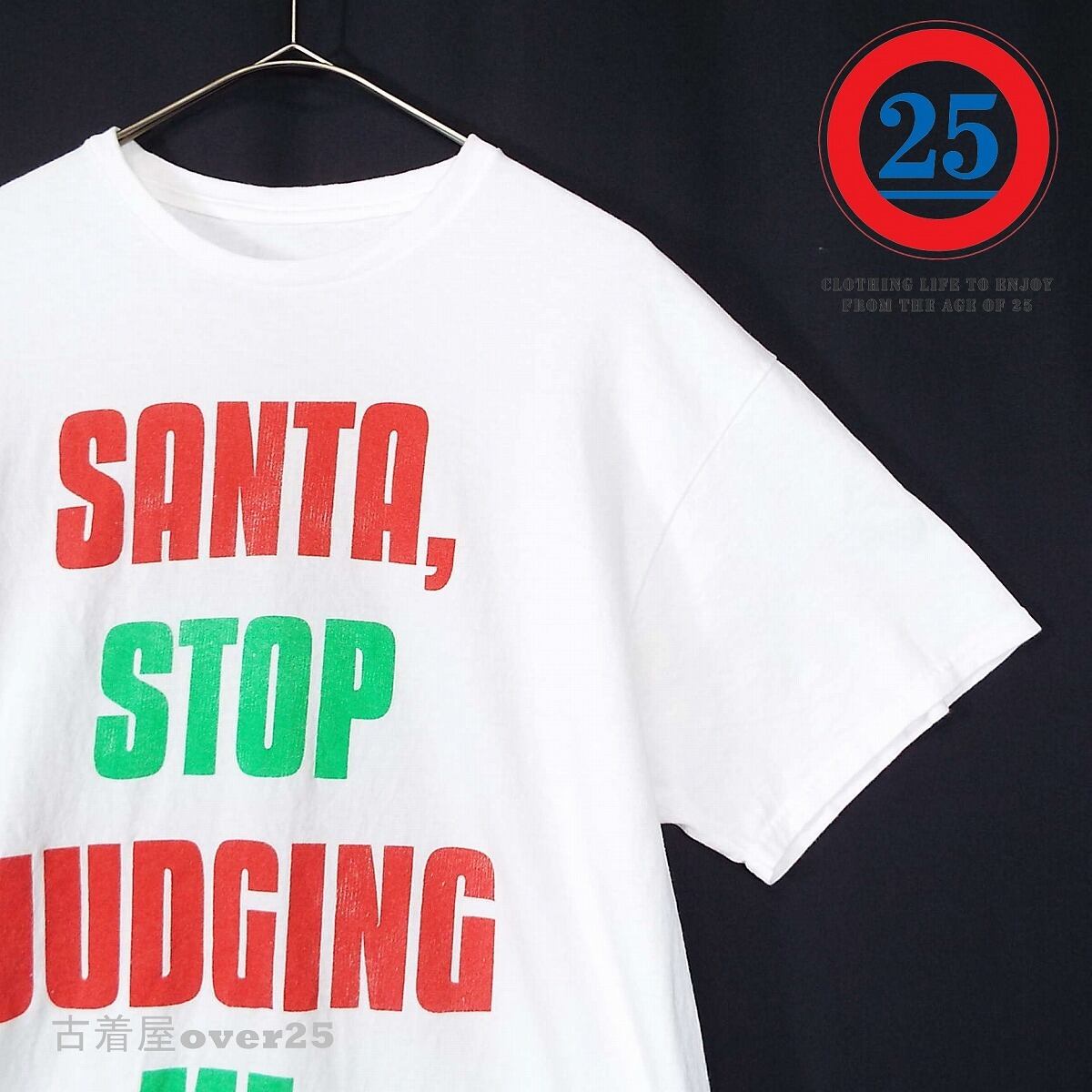 レタードデザイン Lサイズ|SANTA,STOP JUDGING ME サンタクロース クリスマス クールネック 半袖Tシャツ ホワイト【湘南倉庫】白Tシャツ