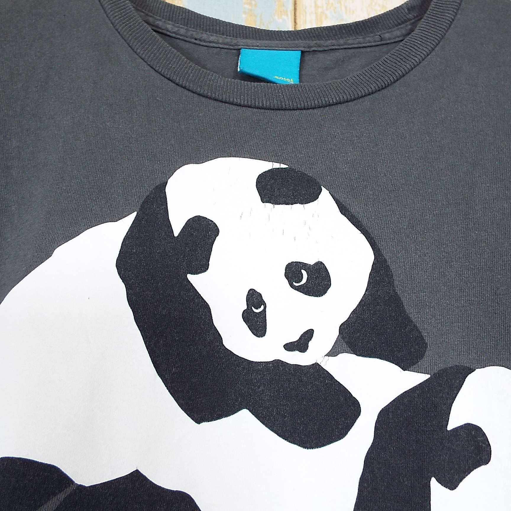 Mサイズ|メキシコ製 ALSTYLE enjoi panda パンダ カワイイ ペンキ クールネック 半袖Tシャツ グレー【湘南倉庫】メンズ古着