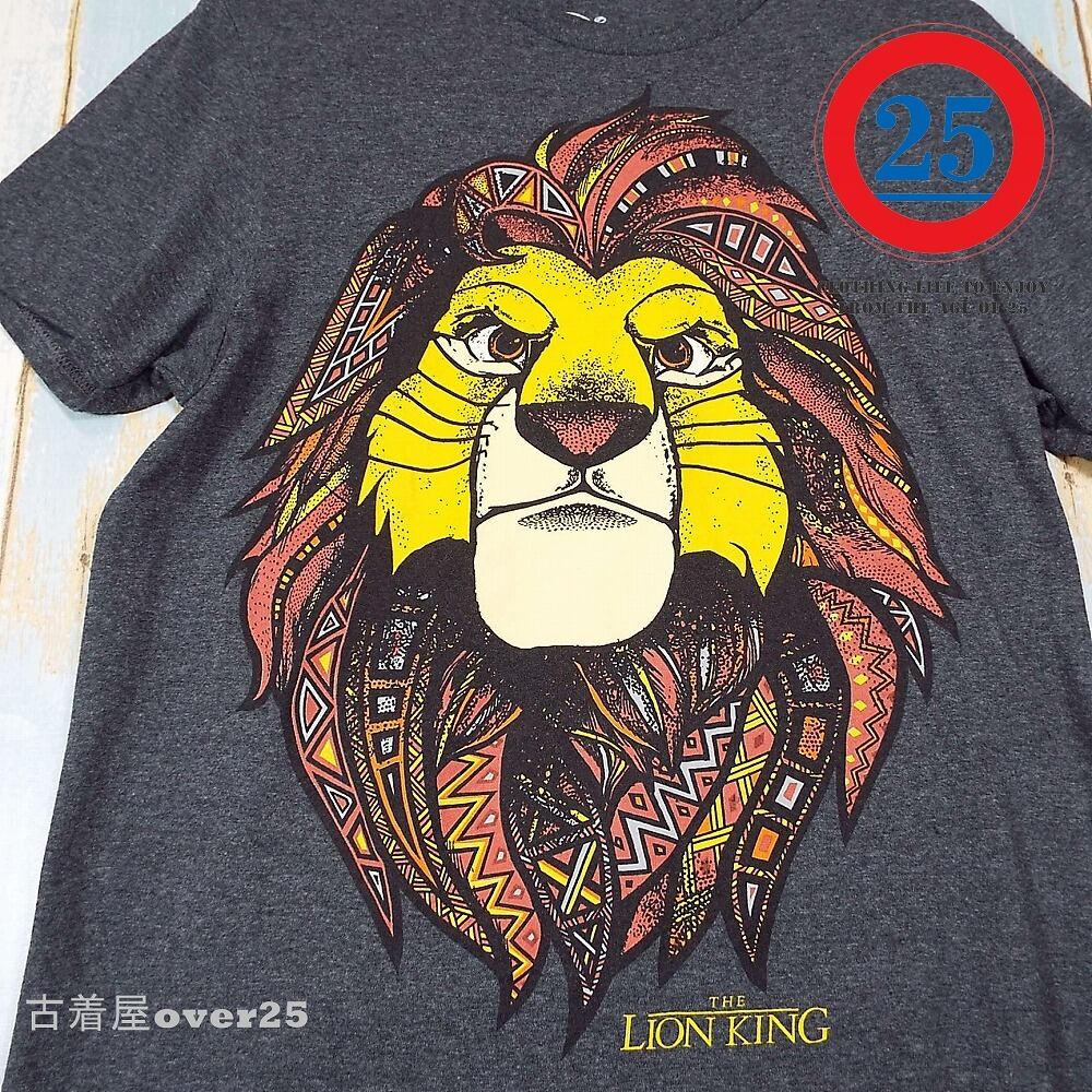 Sサイズ|Disney ディズニー公式グッズ THE LION KING ライオンキング シンバ キャラクター クールネック 半袖Tシャツ グレー【湘南倉庫】ユニセックス古着
