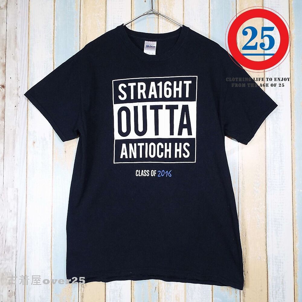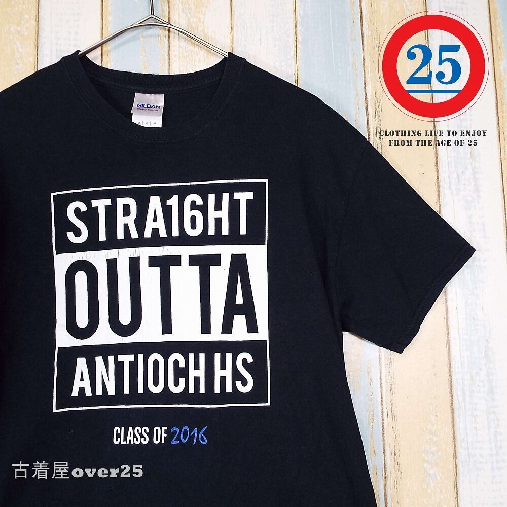 Mサイズ|GILDAN STRA16HT OUTTA ANTIOCH HS ひび割れプリント クールネック 半袖Tシャツ ブラック【湘南倉庫】USメンズ古着